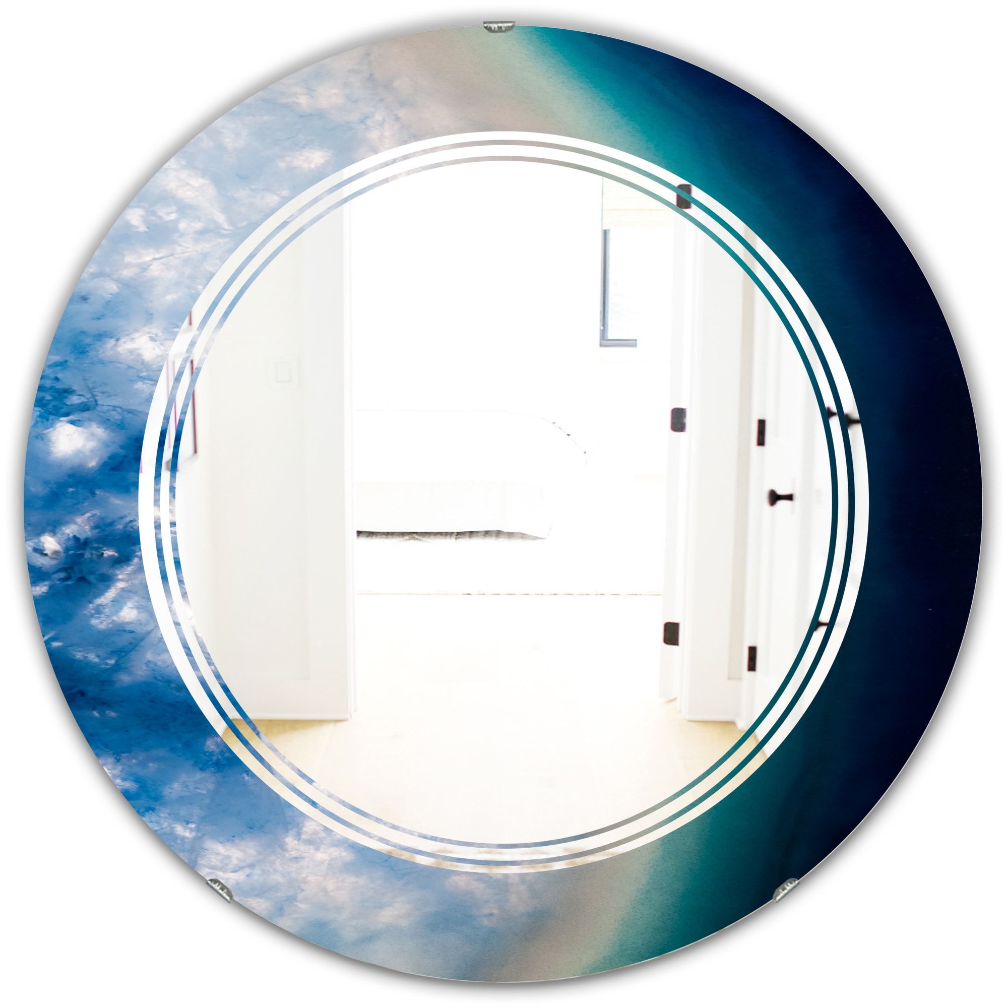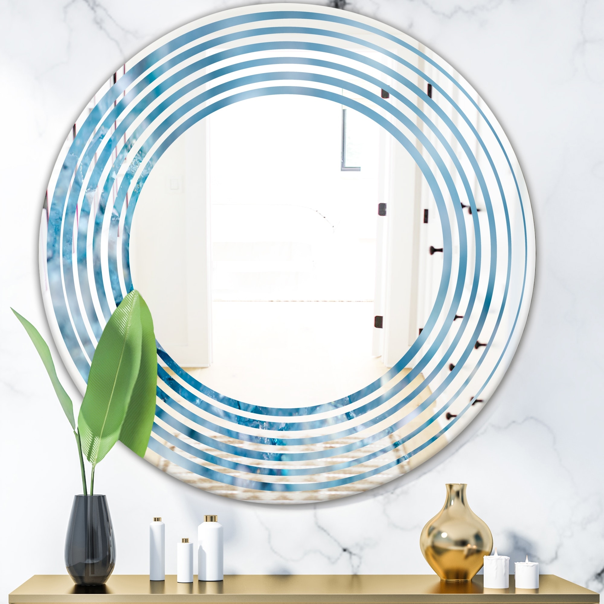 Designart 'Blue crystals Agate' Printed Modern Round or Oval Wall Mirror - Wave
