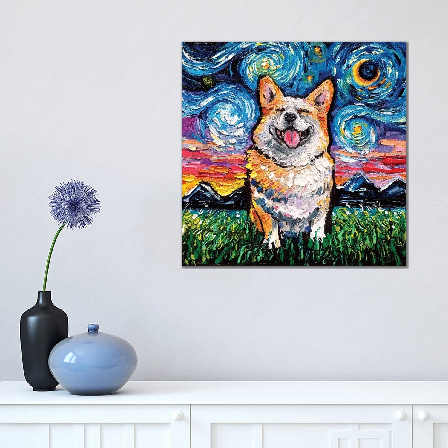 iCanvas "Smiling Corgi Night" by Aja Trier Canvas Print