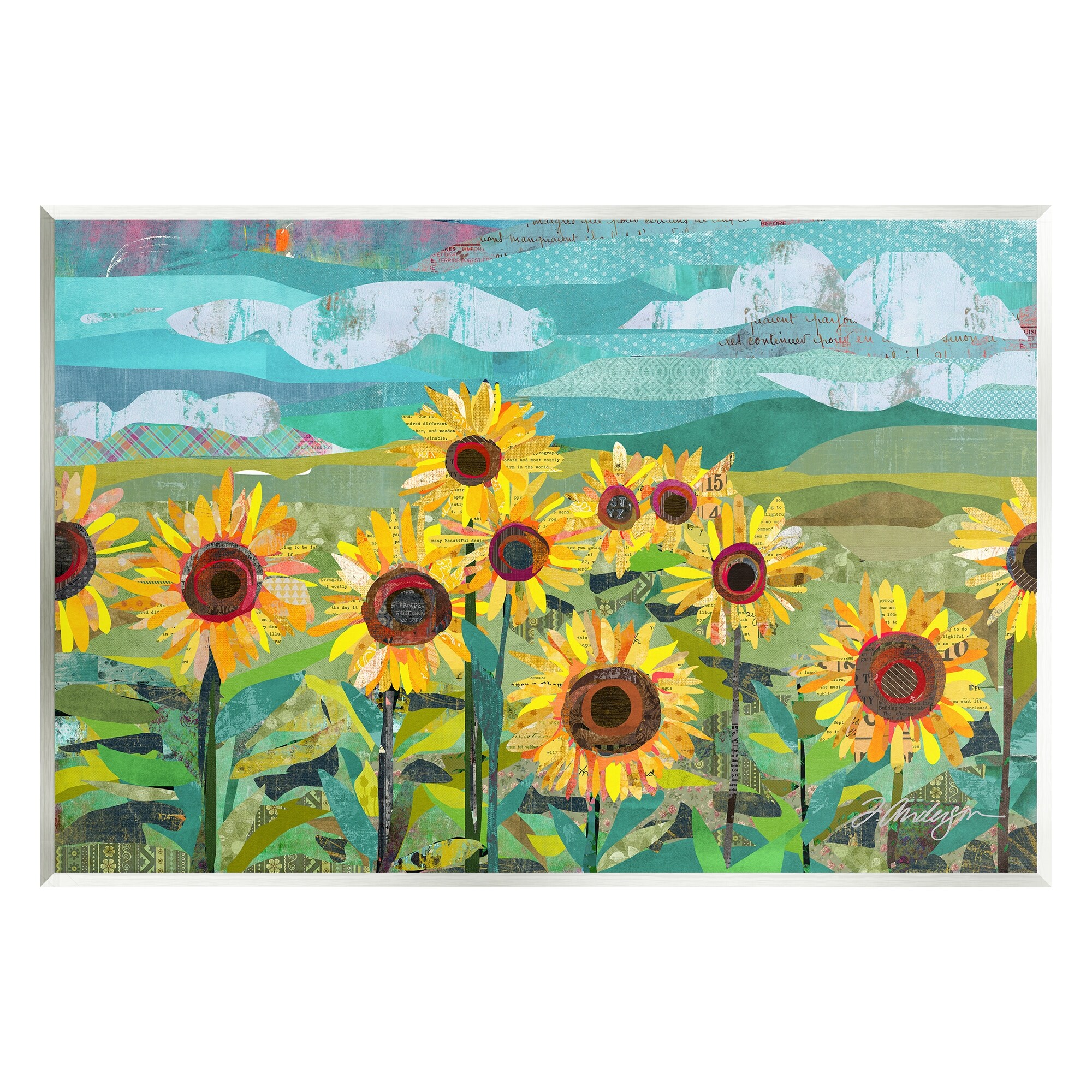 Stupell Collaged Sunflower Field Abstract Layered Ephemera Meadow Wood Wall Art, Design by Traci Anderson