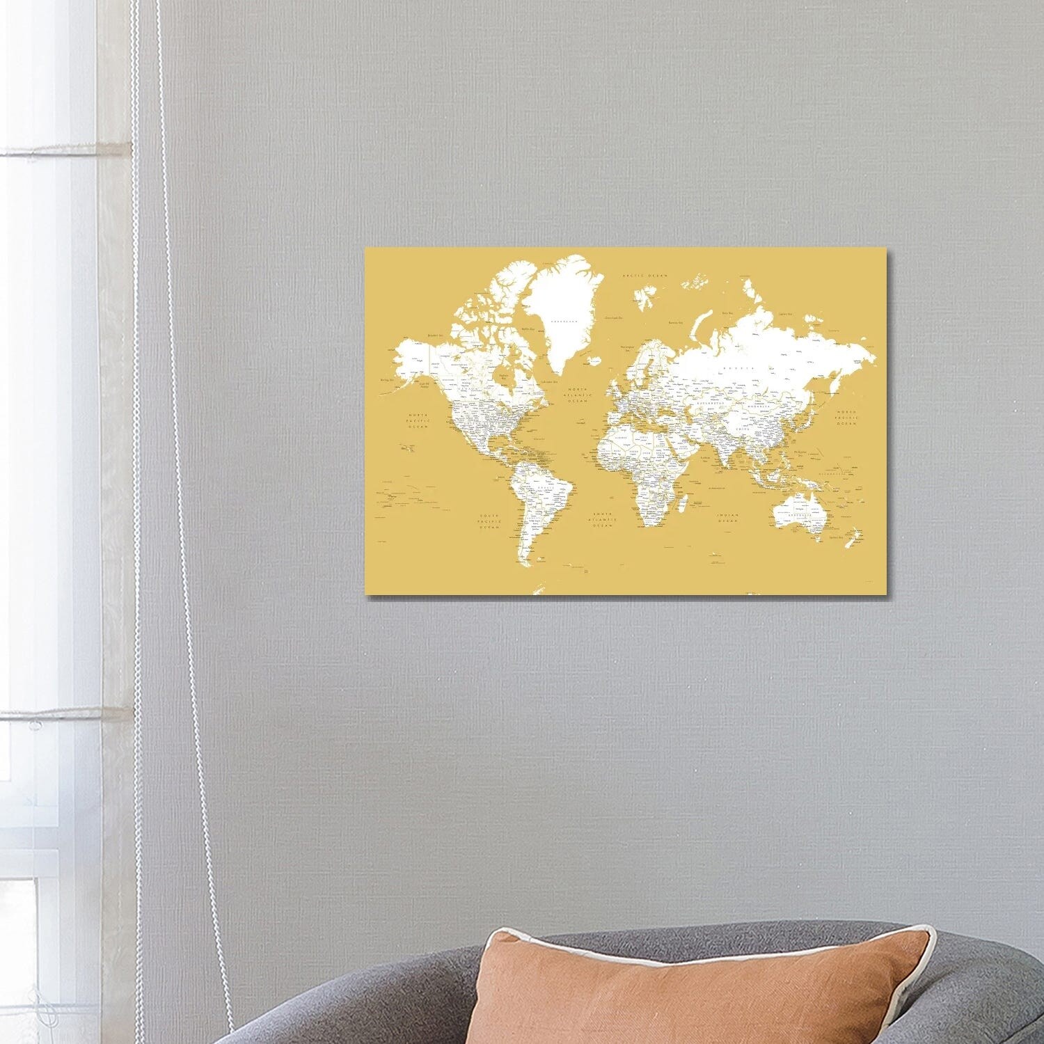 iCanvas "Mustard Detailed World Map With Cities, Andrew" by blursbyai Canvas Print
