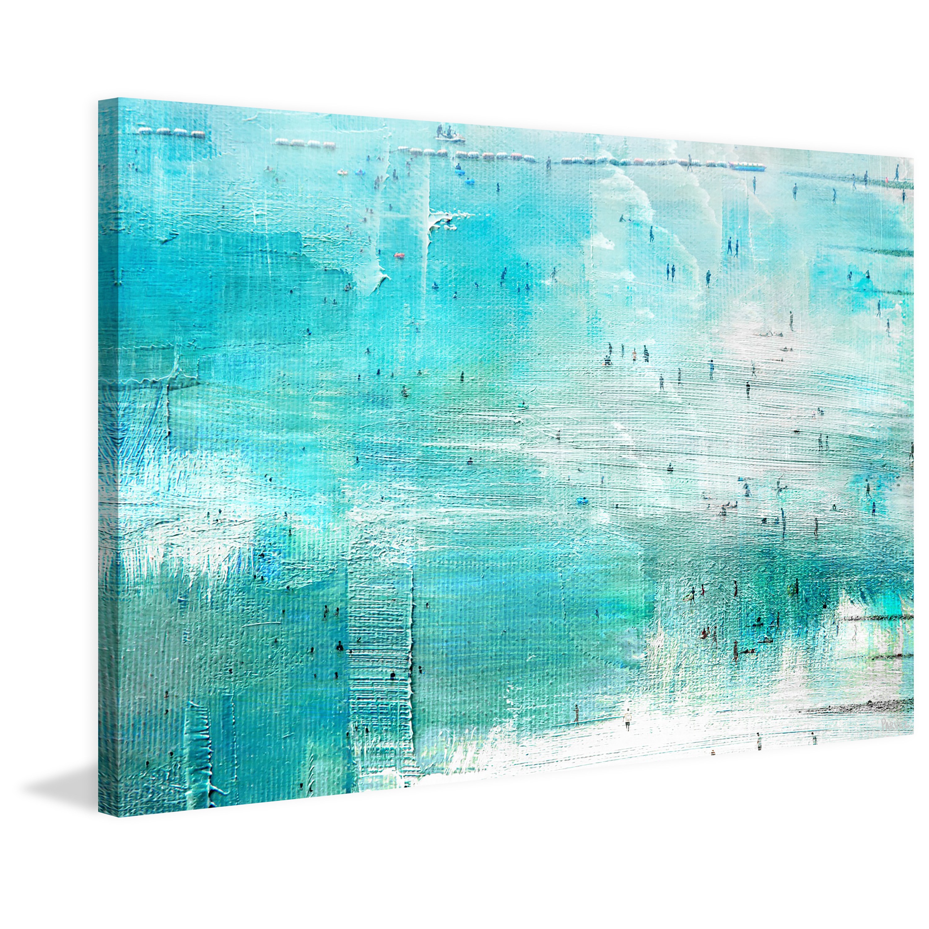 Handmade Parvez Taj - Aqua Surf Print on Wrapped Canvas