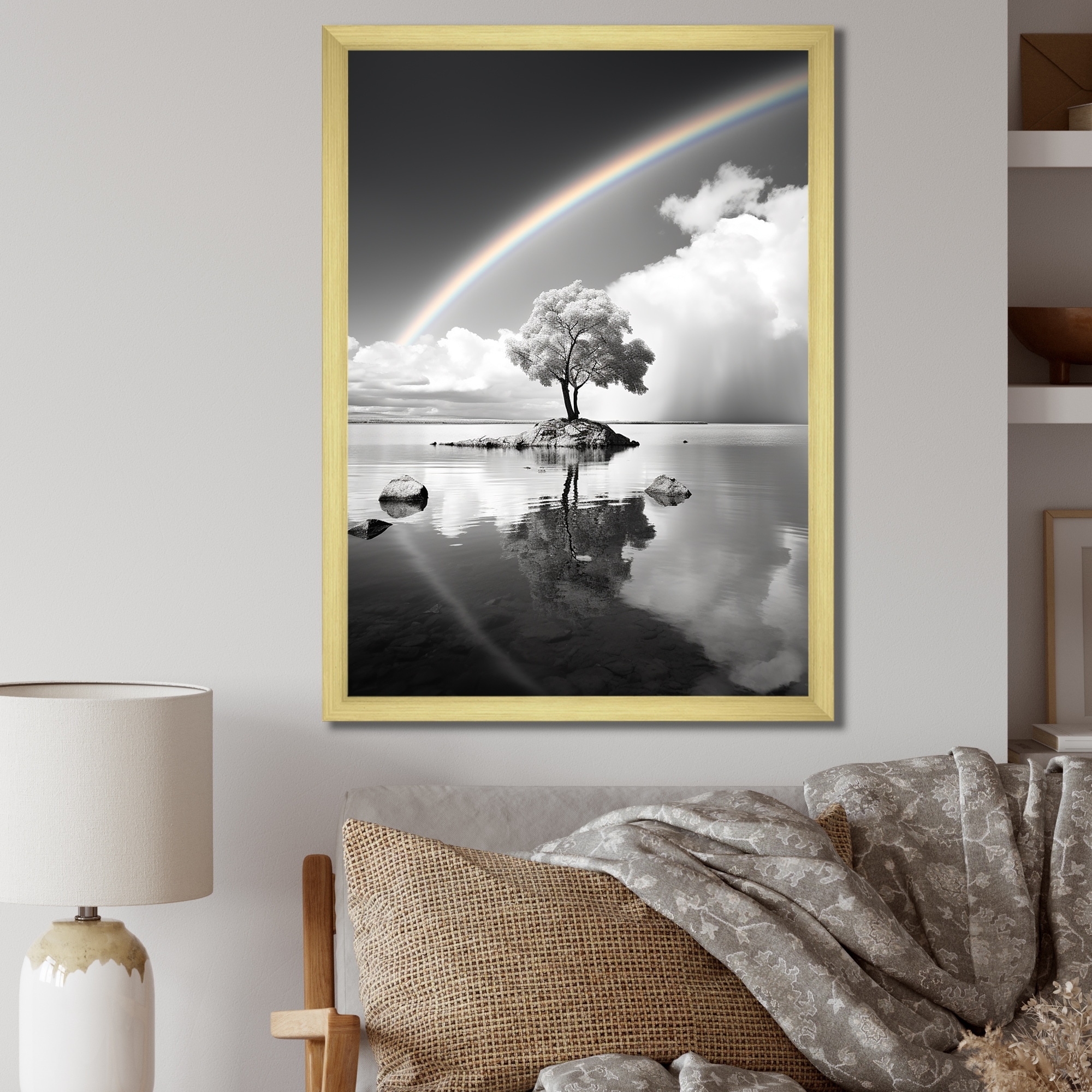 Designart "Rainbow Grayscale Arc Over Tree I" Rainbow Framed Canvas Prints