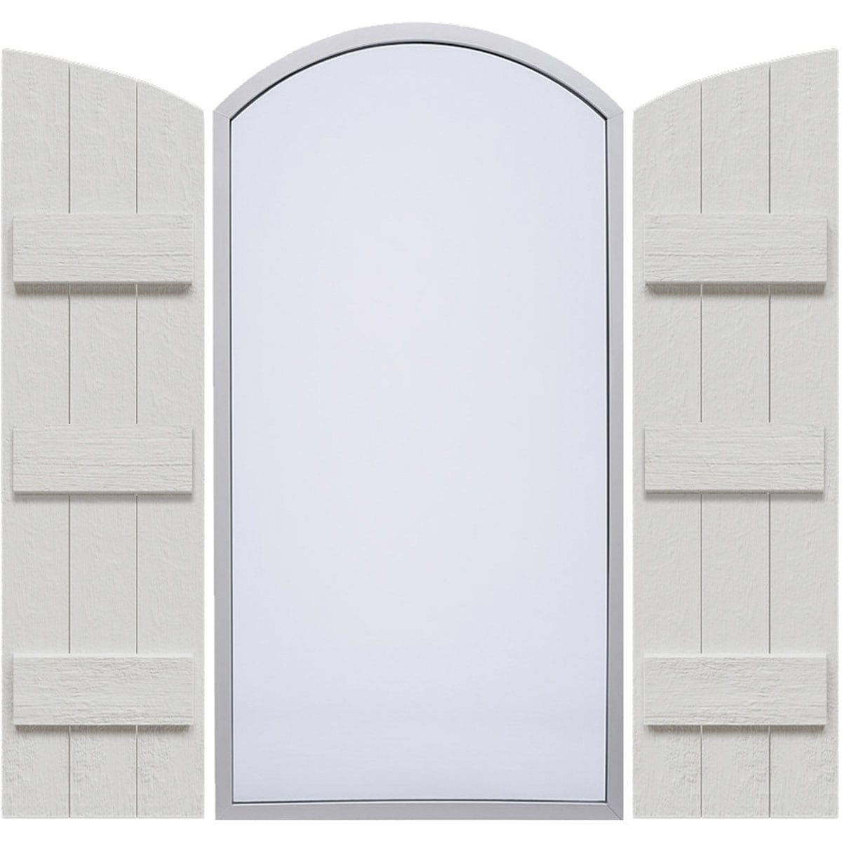 Rustic Two Board Joined Board-n-Batten Faux Wood Shutters w/Elliptical Arch Top (Per Pair)