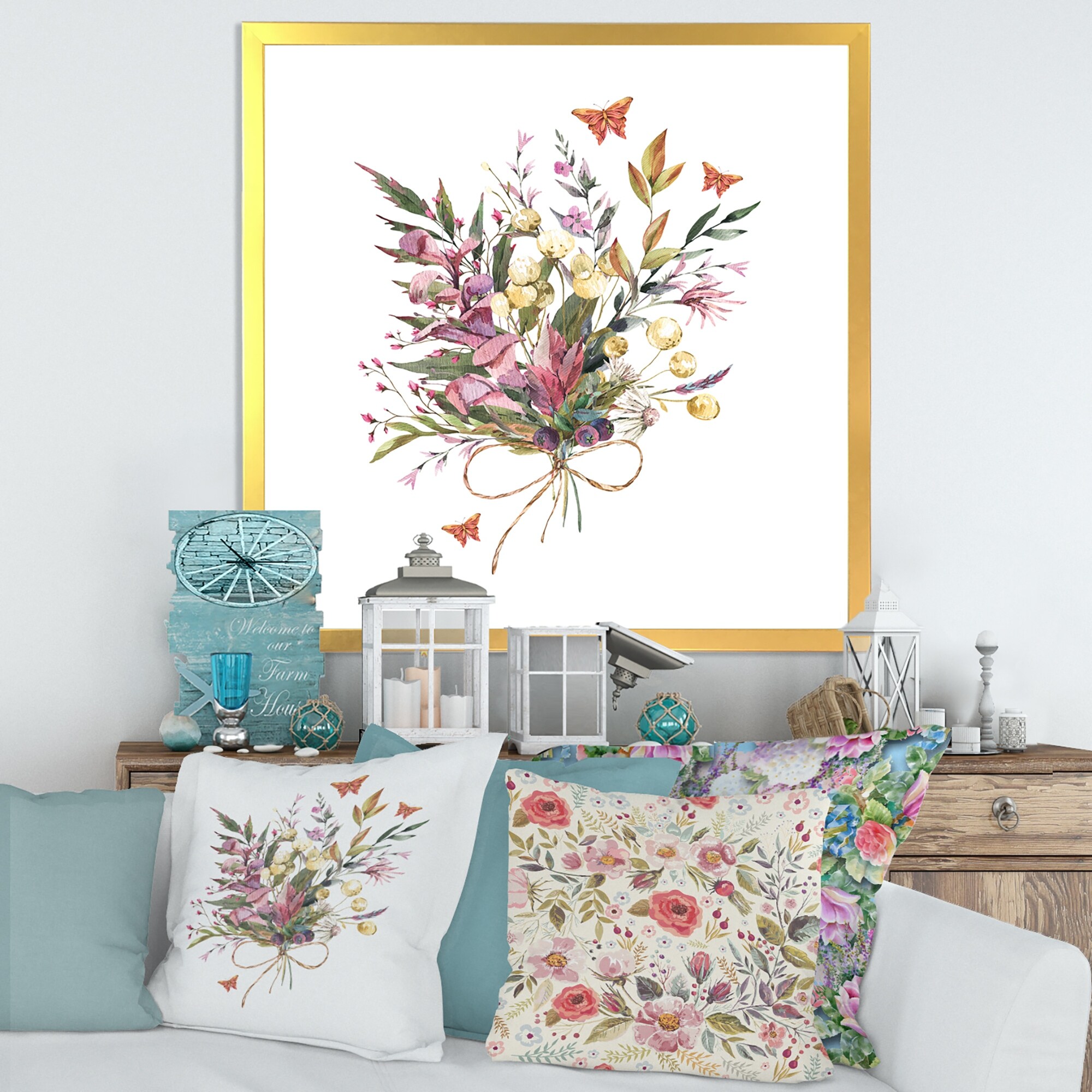 Designart "Vintage Floral Summer Wildflowers Arrangement" Traditional Framed Art Print