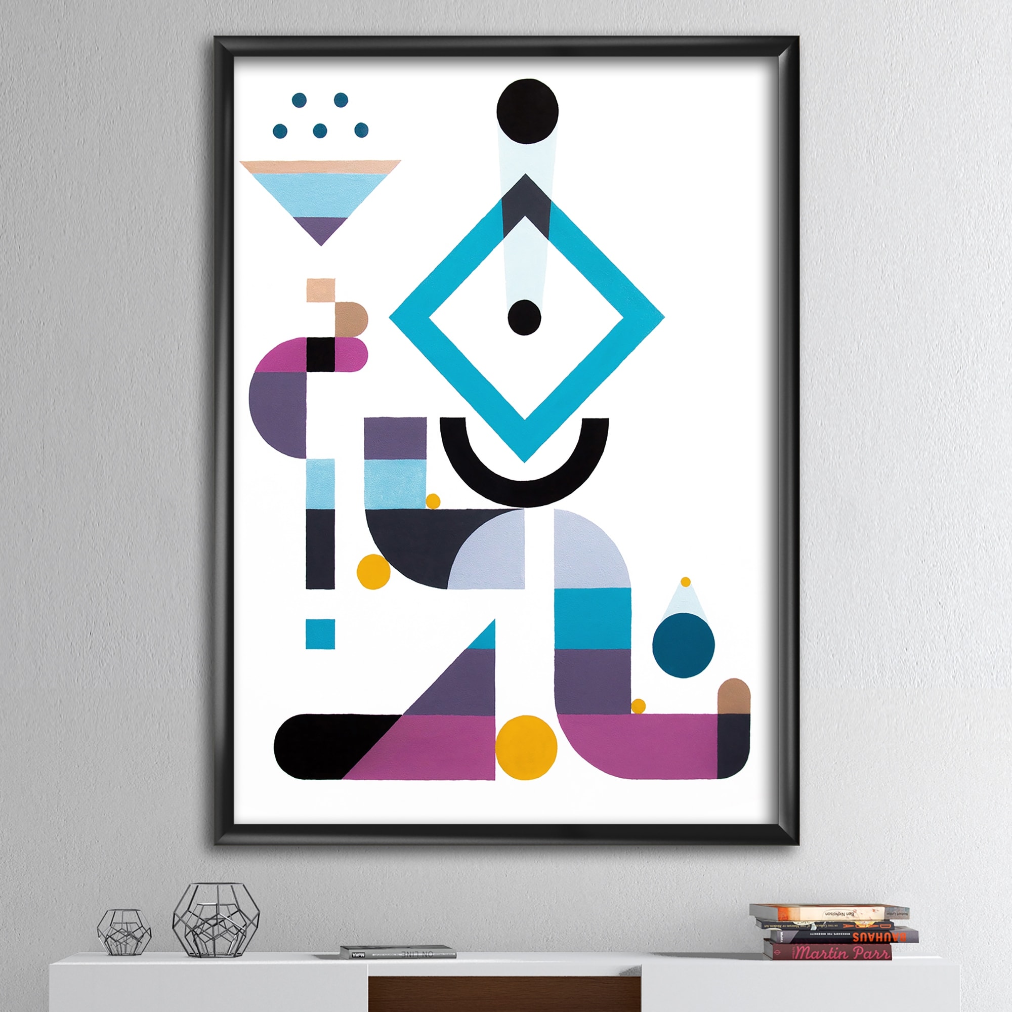 Designart "Blue Diamond Arrangement" Mid-Century Modern Framed Art Print