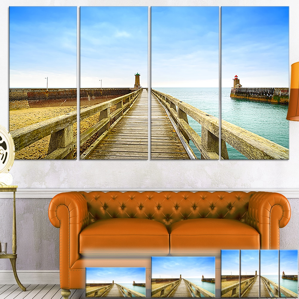 Designart "Pier and Lighthouse France" Seascape Photo Canvas Wall Art