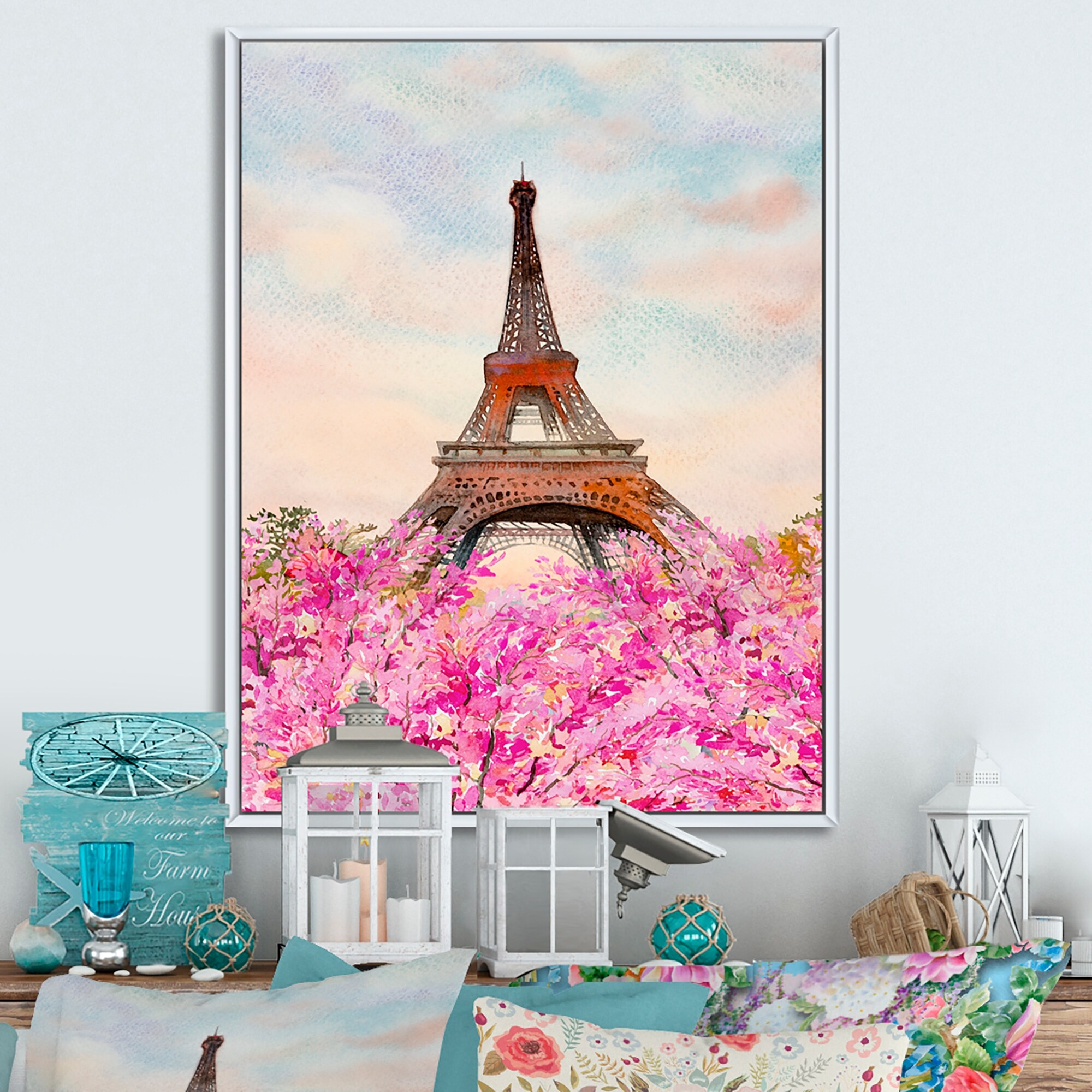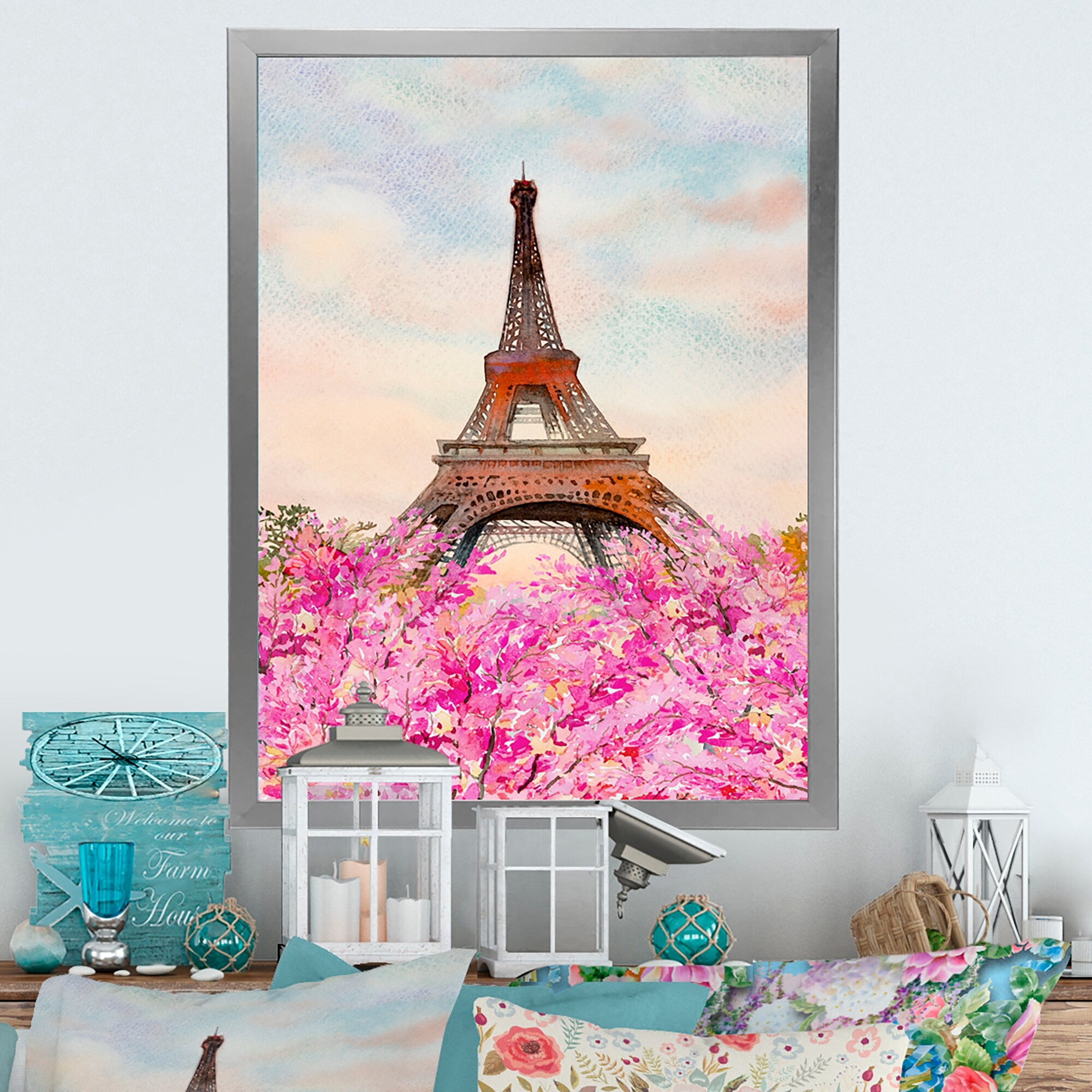 Designart "Summer Paris France Eiffel Tower II" Traditional Framed Canvas Art Print