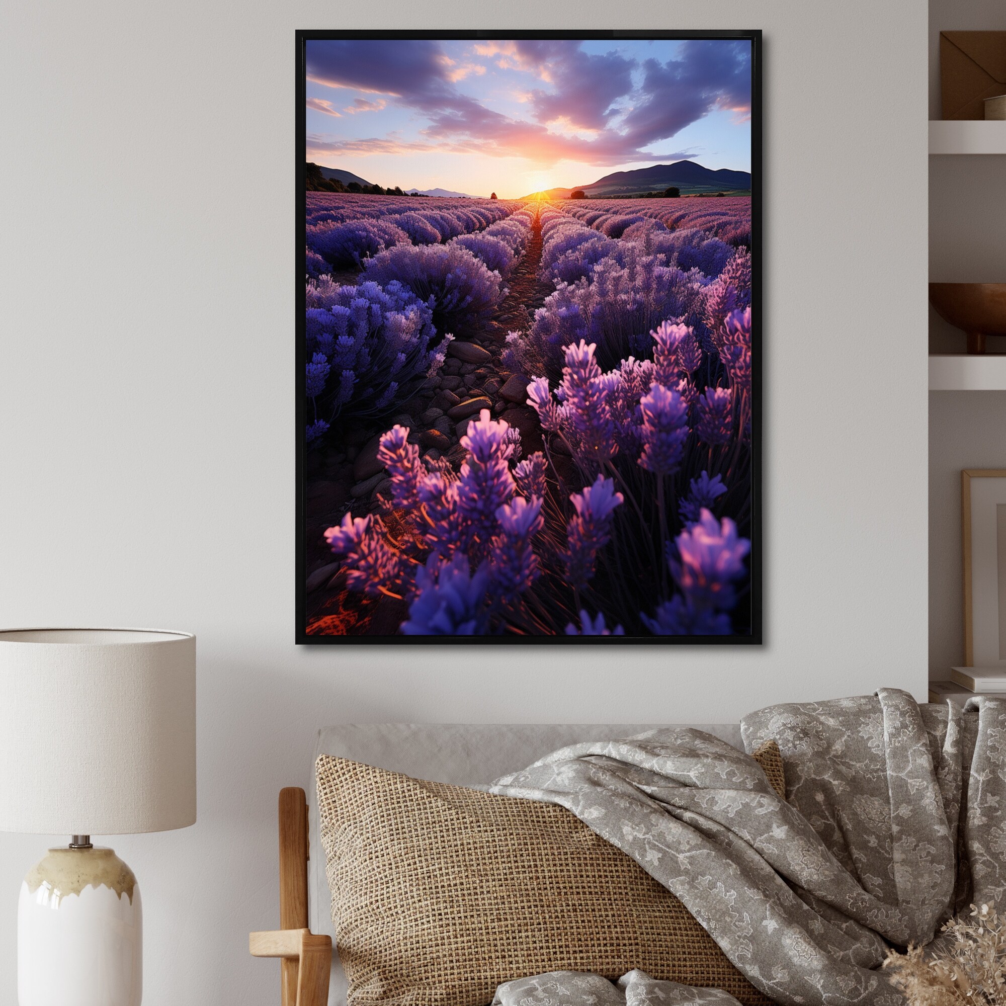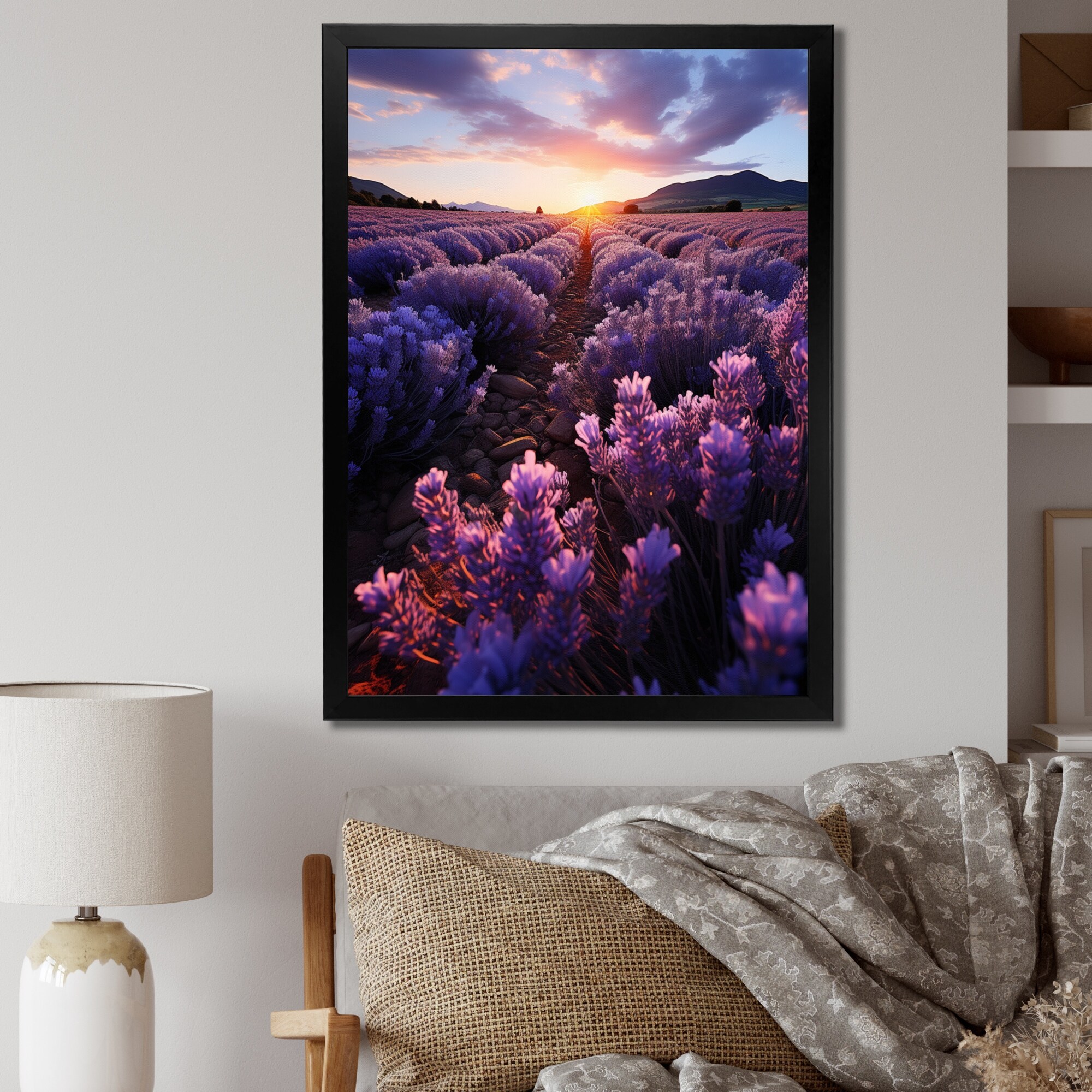 Designart "French Provencal Lavender Fields III" France Framed Canvas Art Print