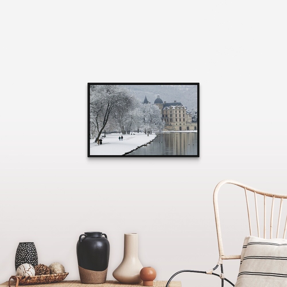 "Building along a lake, Chateau de Vizille, Vizille, France" Black Float Frame Canvas Art