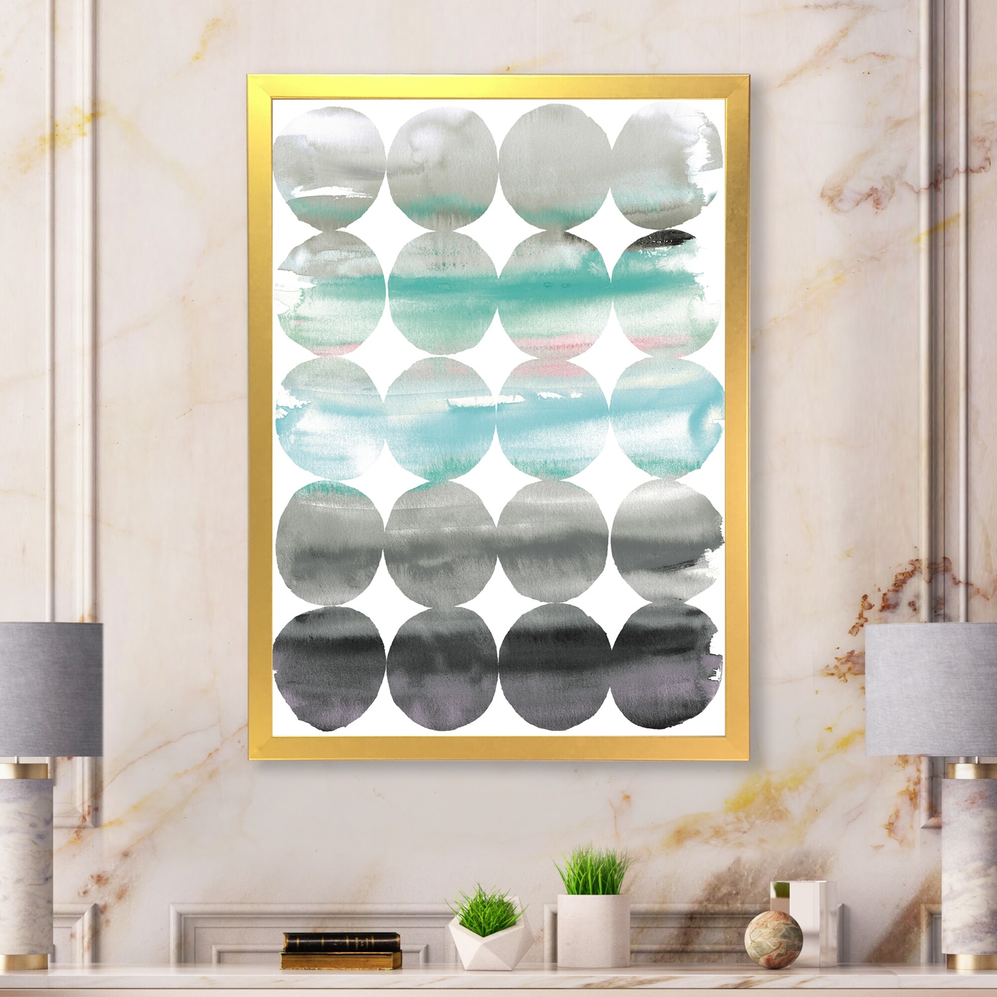 Designart "geometric Neutral Glue Circles" Transitional Framed Art Print
