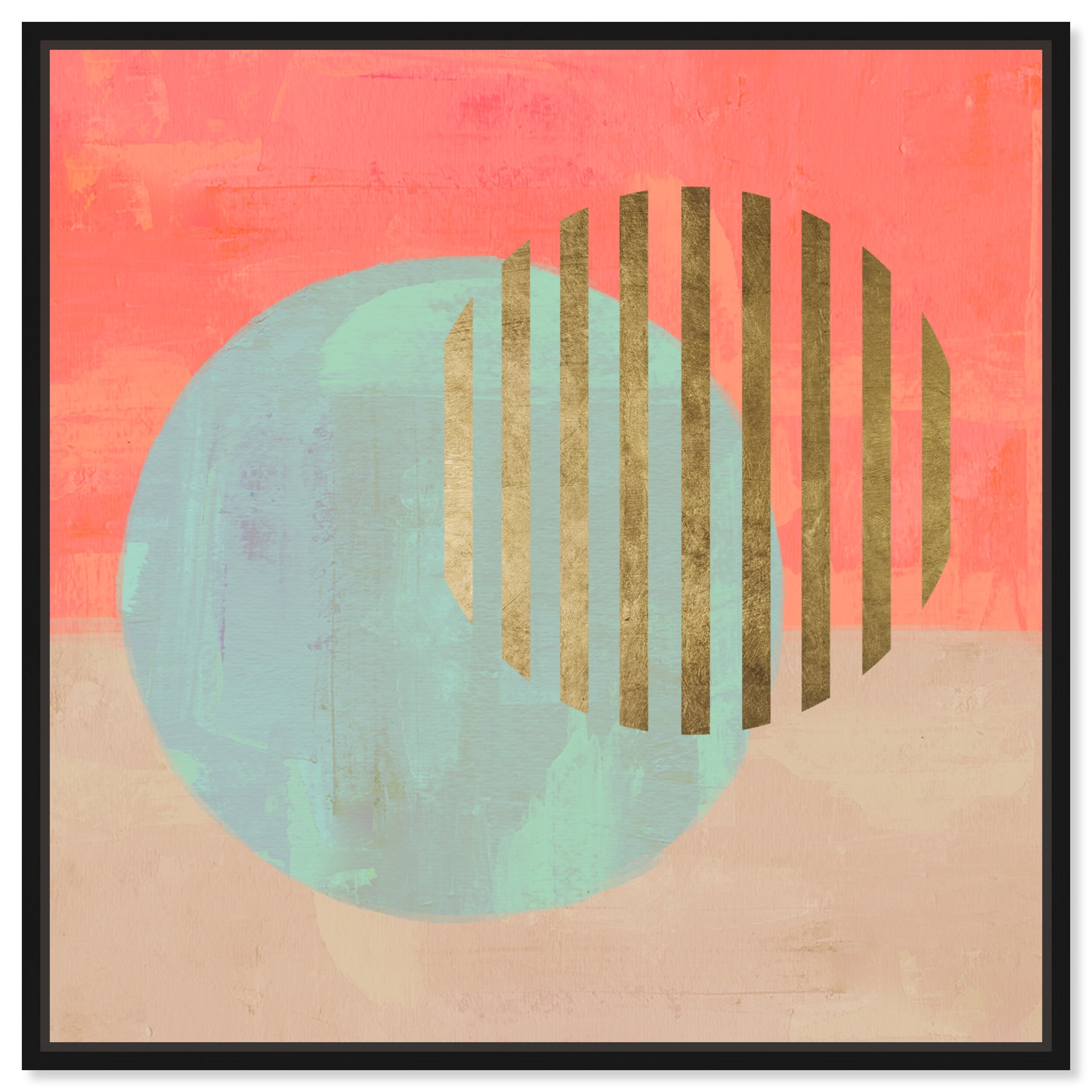Twin Suns, Glam Sunset Circles Modern Gold Canvas Wall Art Print for Living Room