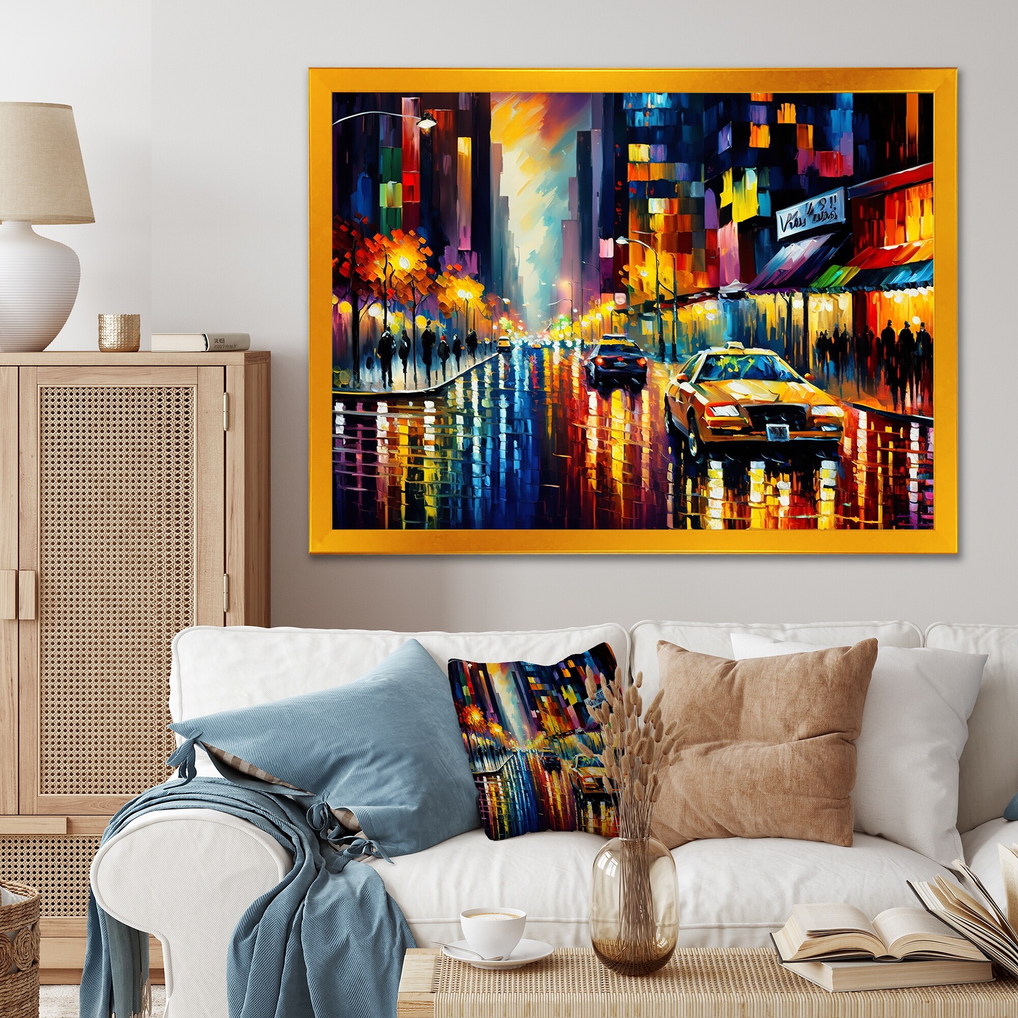 Designart "Colorful Manhattan Time Square I" Cityscapes Framed Art Print
