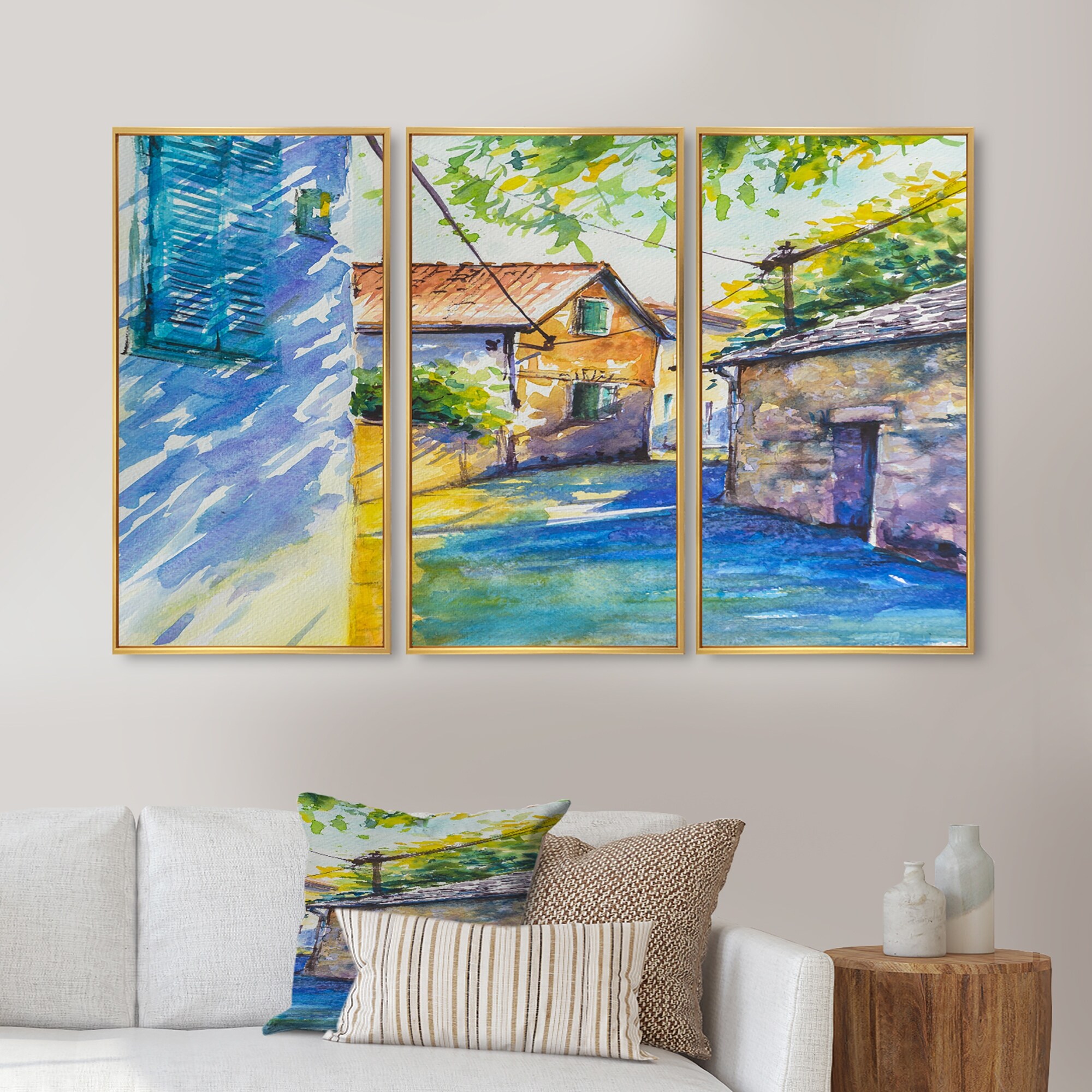Designart "Sketch Of Old Europe Street VI" Colonial Framed Canvas Wall Art Set of 3 - 4 Colors of Frames