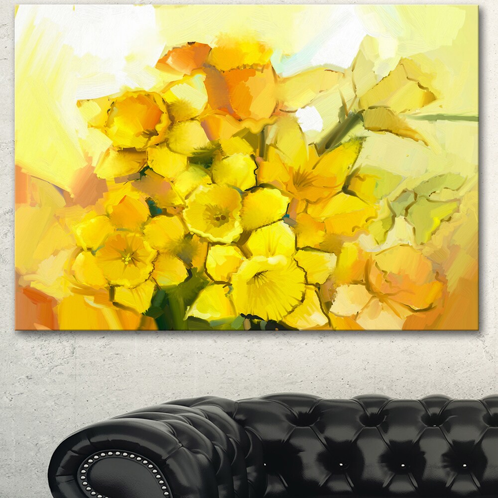 Designart "Bouquet of Yellow Narcissus Flowers" Large Floral Canvas Artwork Print