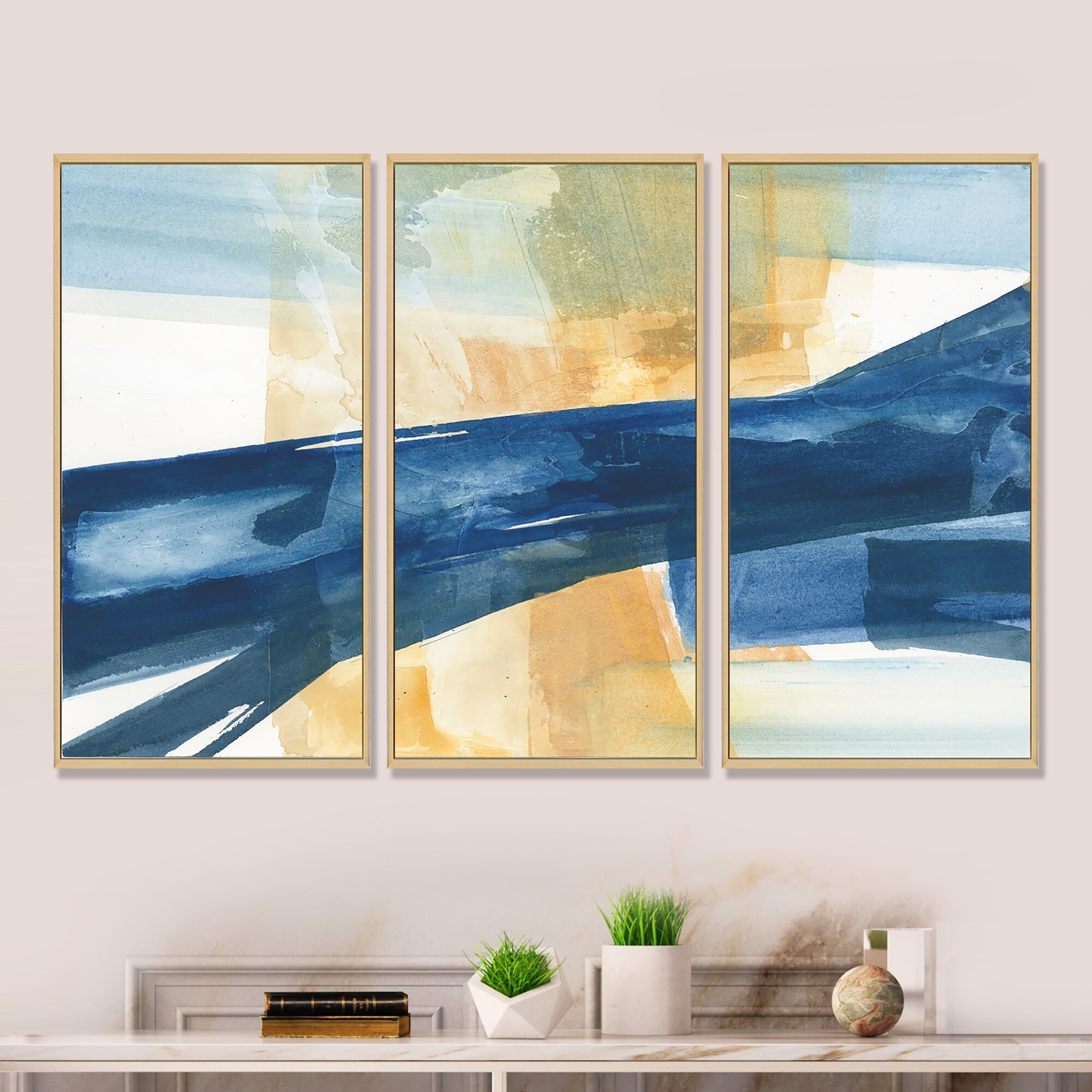 Designart "Indigo Panel III" Modern & Contemporary Framed Artwork Set of 3 - 4 Colors of Frames
