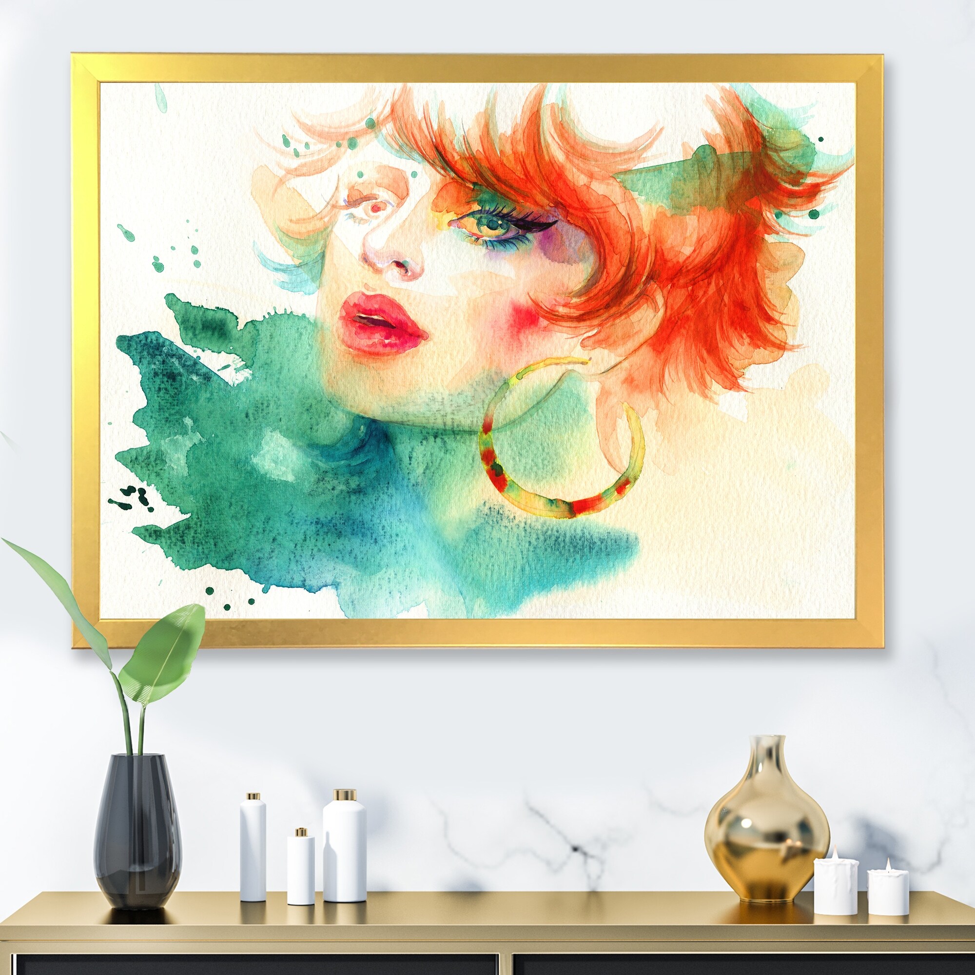 Designart "Colorful Model Woman Portrait" Glam Framed artwork