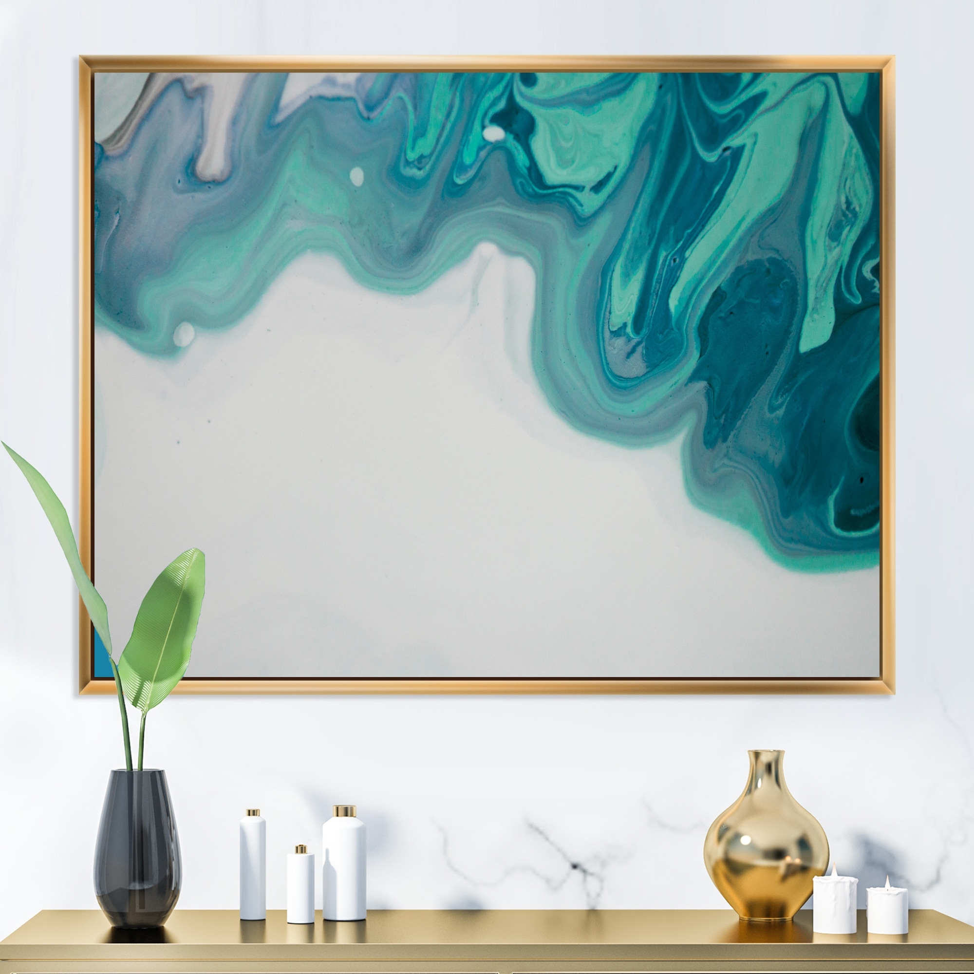 Designart "Luxury Turquoise Marble Fluid Art" Abstract Framed Canvas artwork