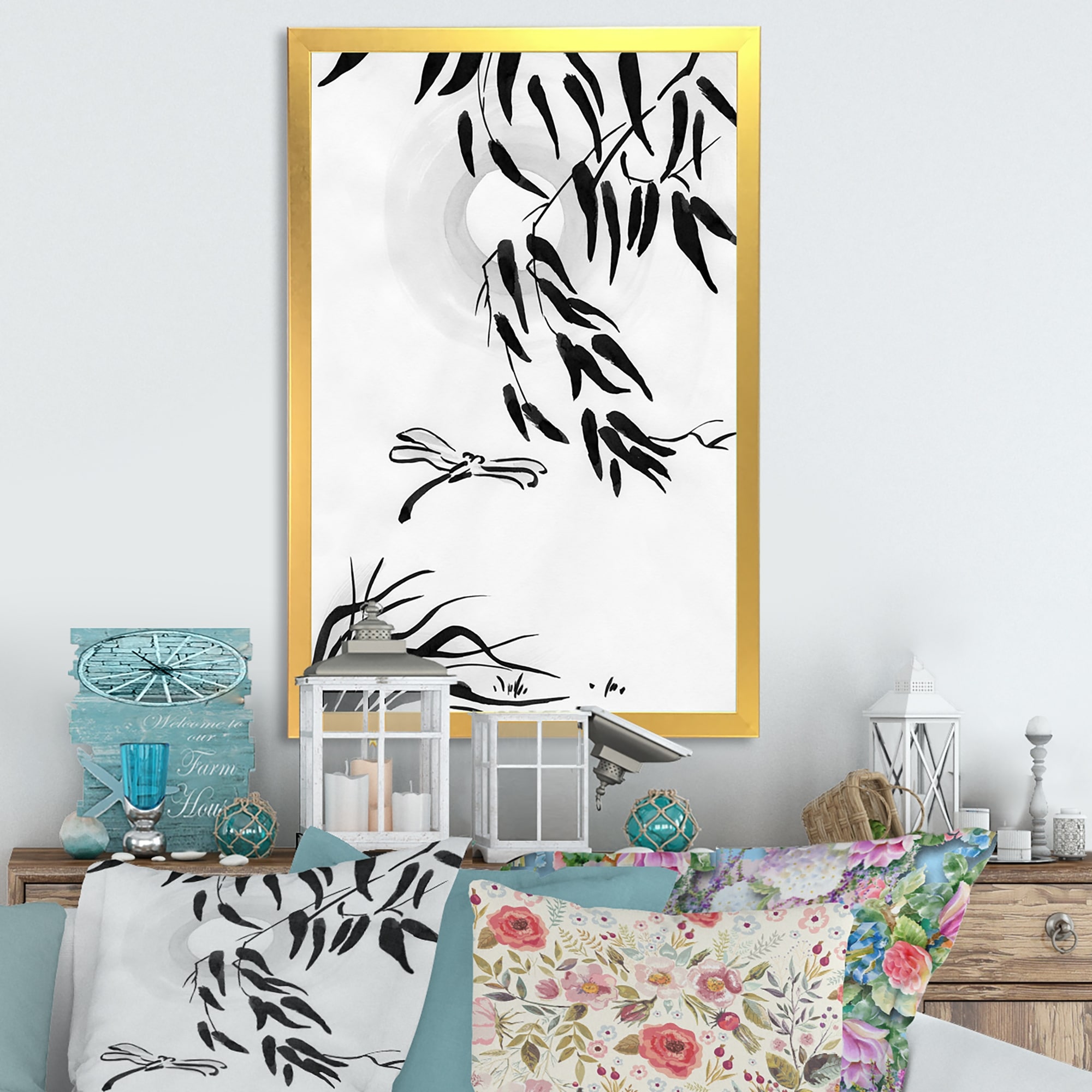 Designart "Asian Sketch of Nature Dragonfly" Traditional Framed Wall Decor