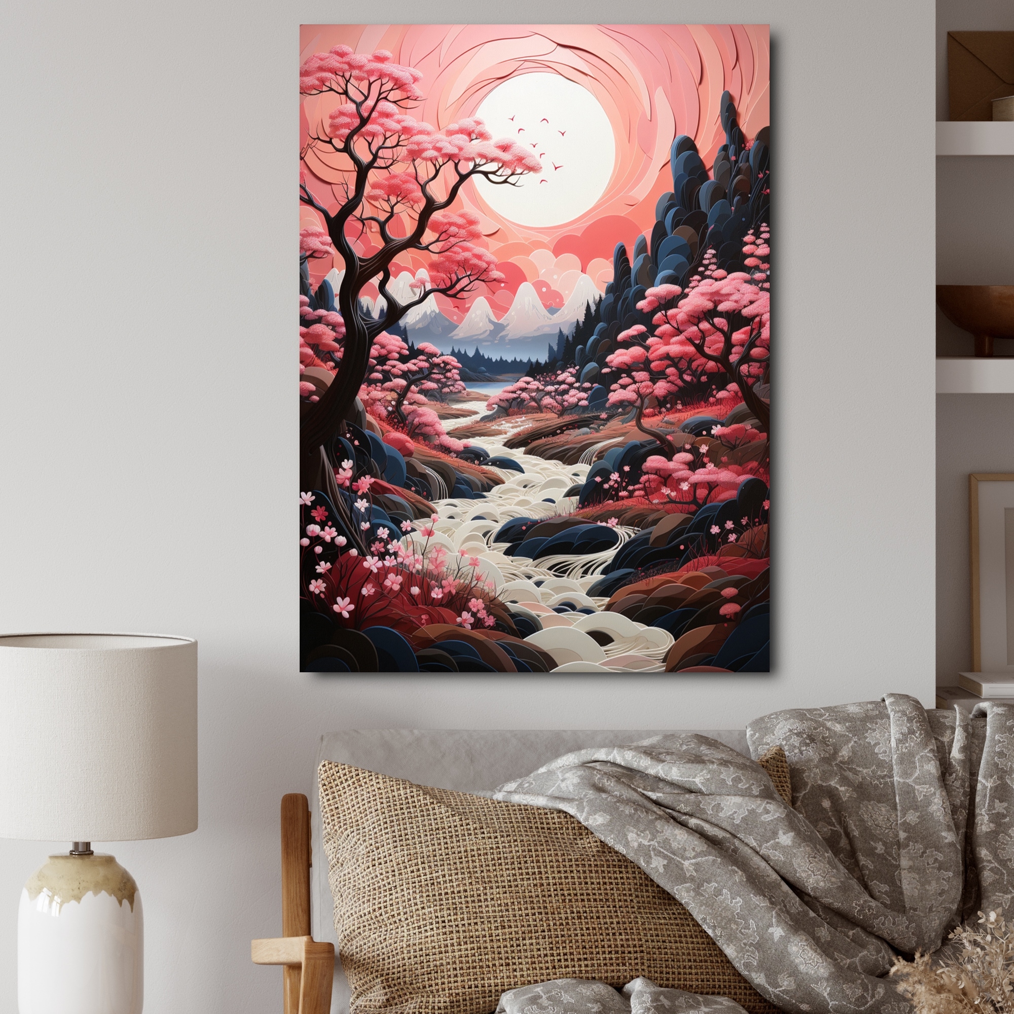 Designart "Mountain Top Asian Inspired Home V" Japon Landscape Metal Wall Art