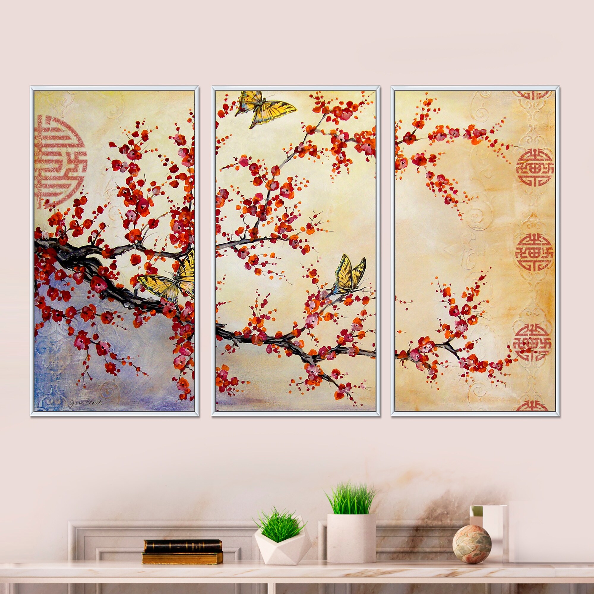Designart "Butterfly Blossoms-Asian" Cottage_General Framed Wall Decor Set of 3 - 4 Colors of Frames