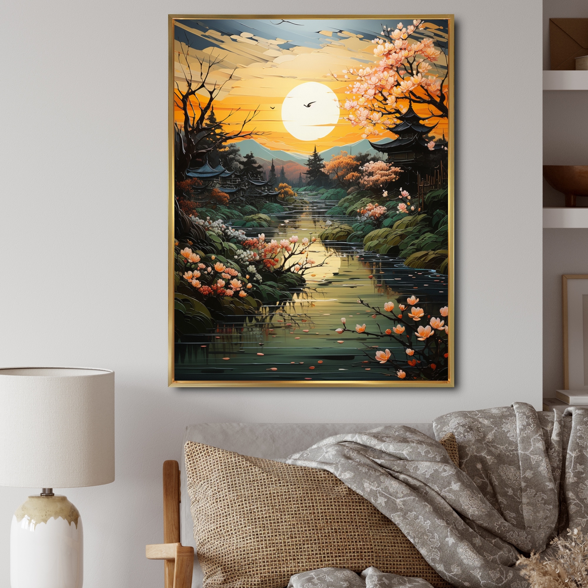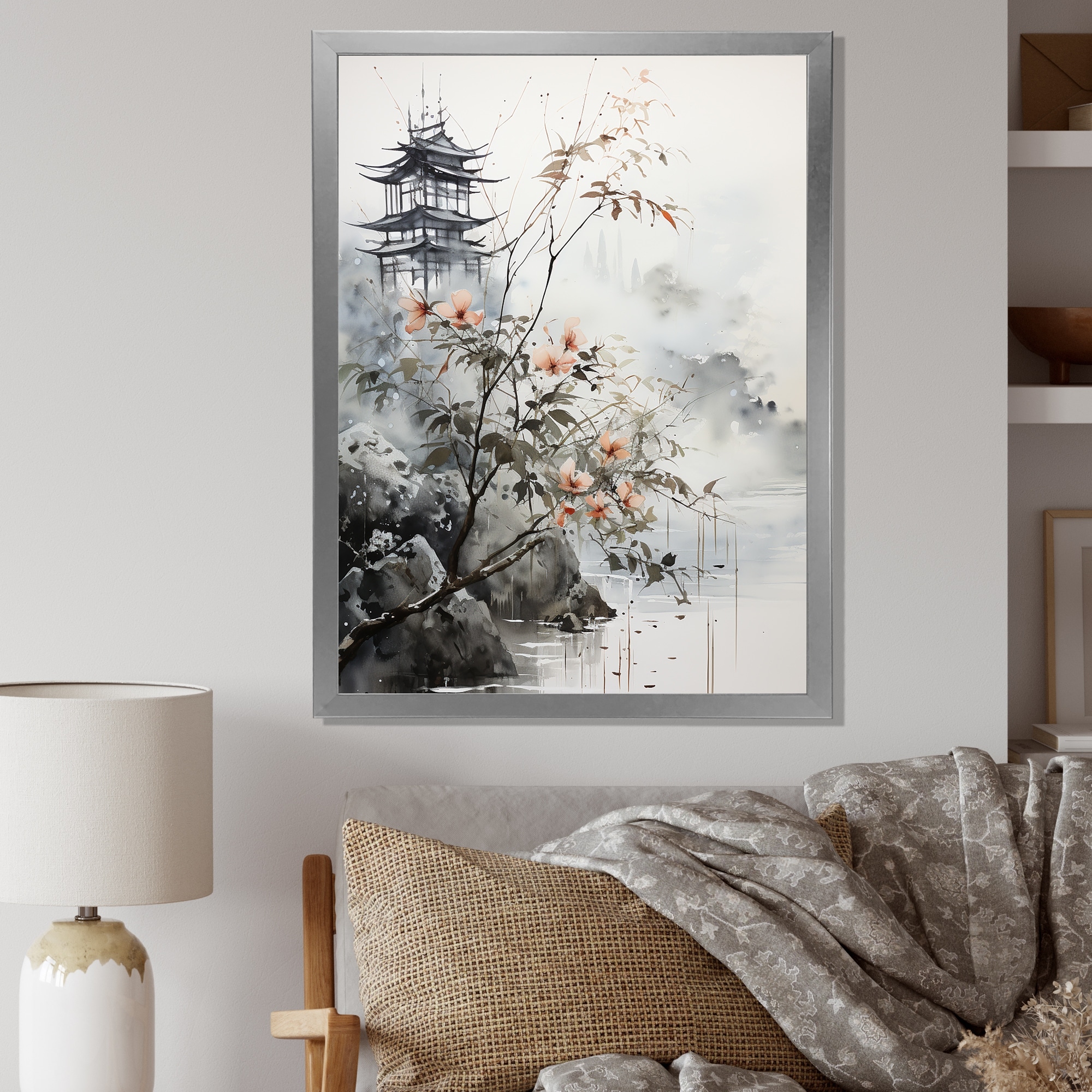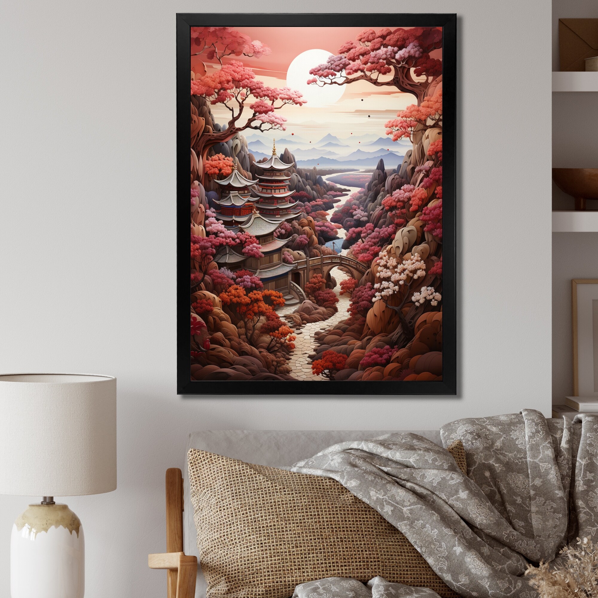 Designart "Asian Art Jade Palace Landscape II" Asian Art Framed Canvas Prints