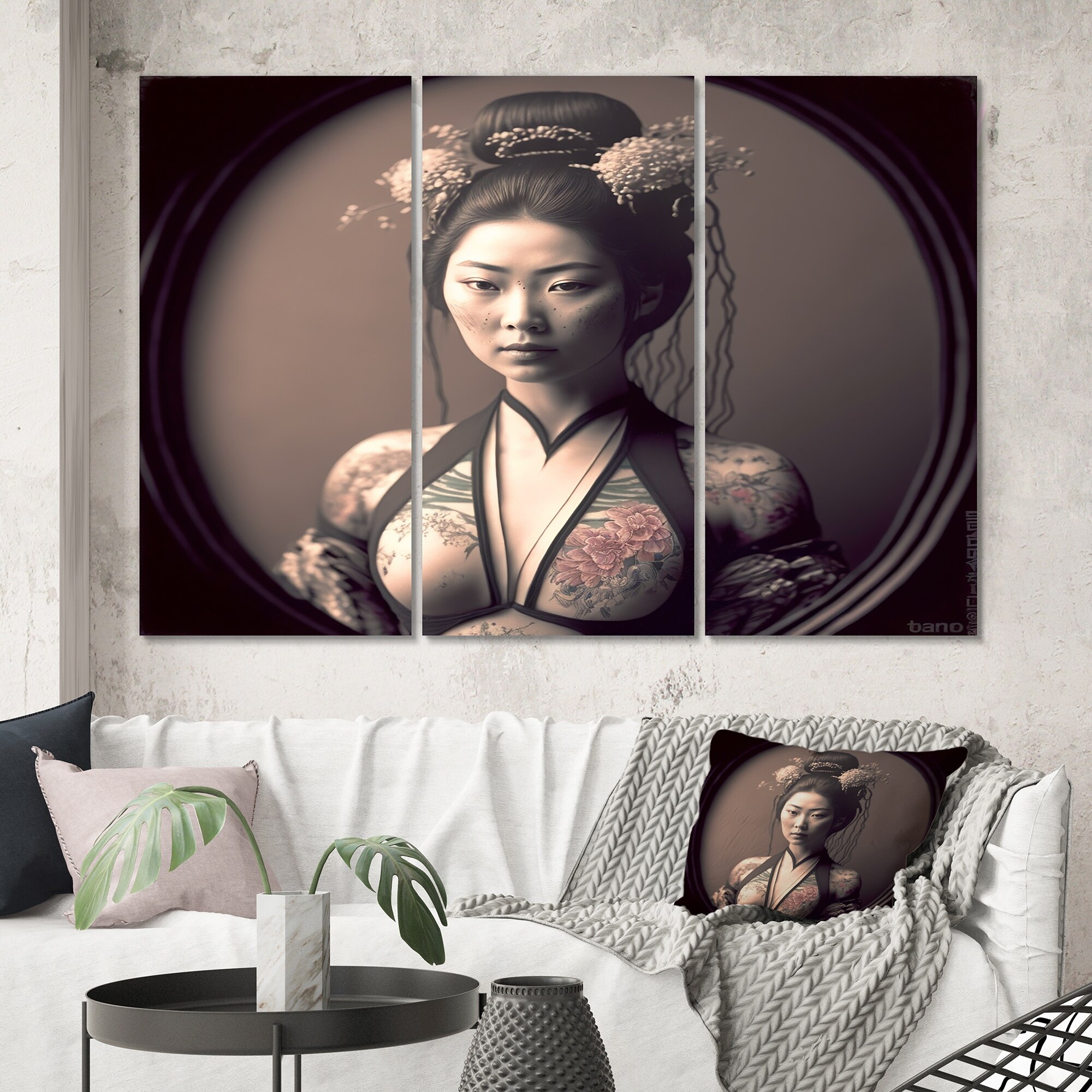 Designart "Samurai Floral Beauty Ii" Asian Woman Framed Canvas Prints