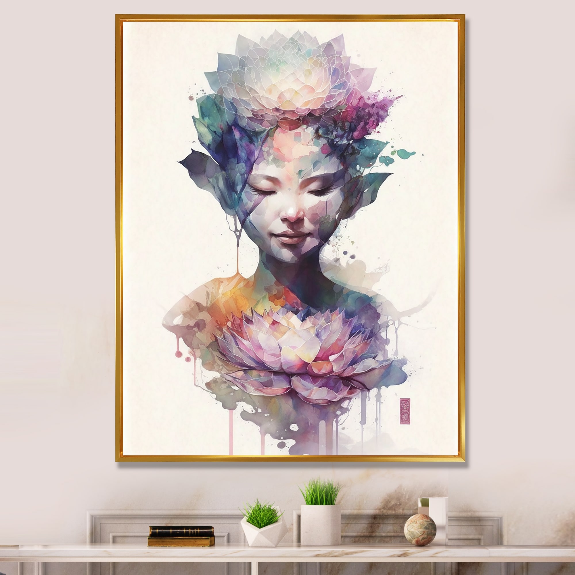 Designart "Elegant Asian Lotus Goddess II" Woman Goddess Framed Canvas Print