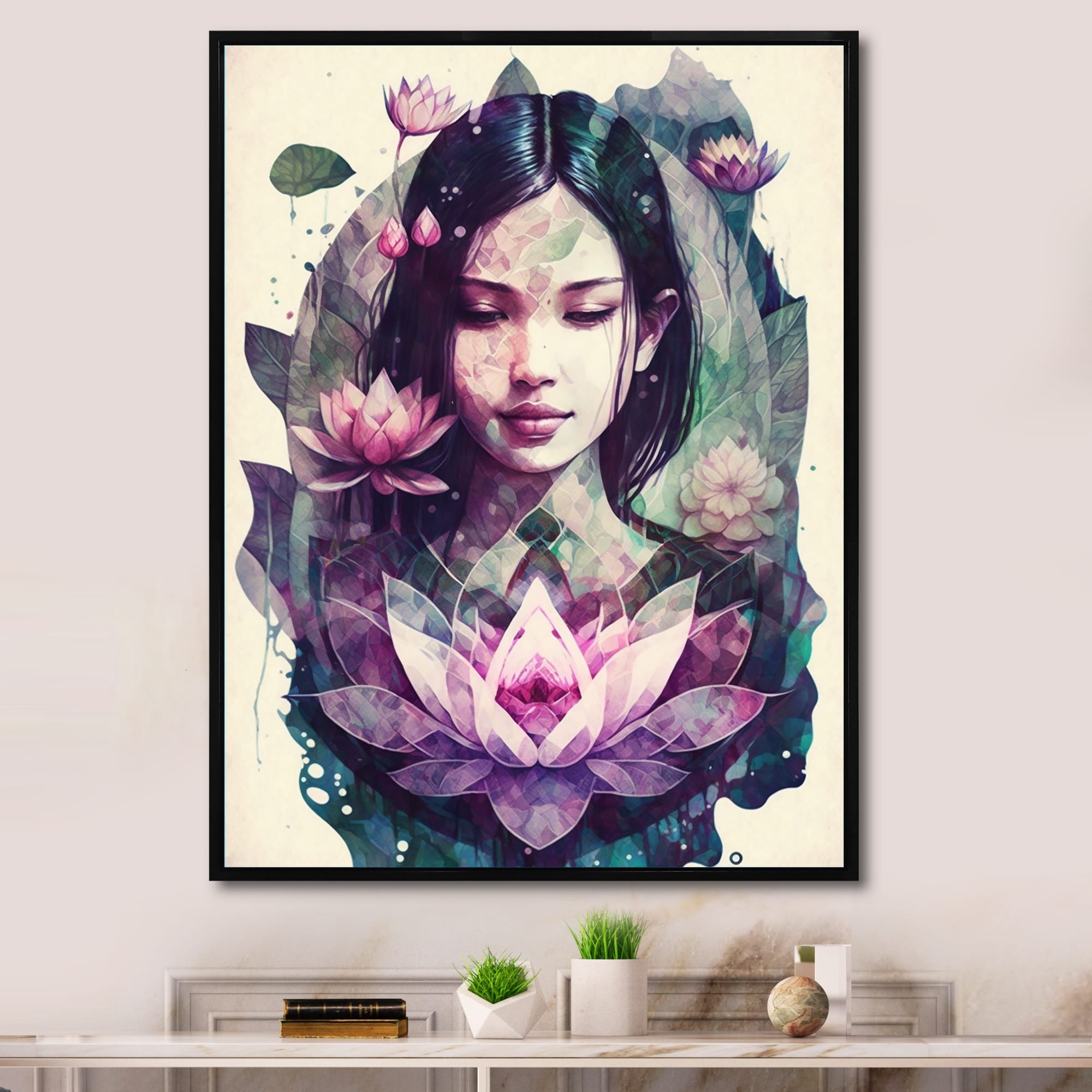 Designart "Elegant Asian Lotus Goddess I" Woman Goddess Framed Wall Art Prints
