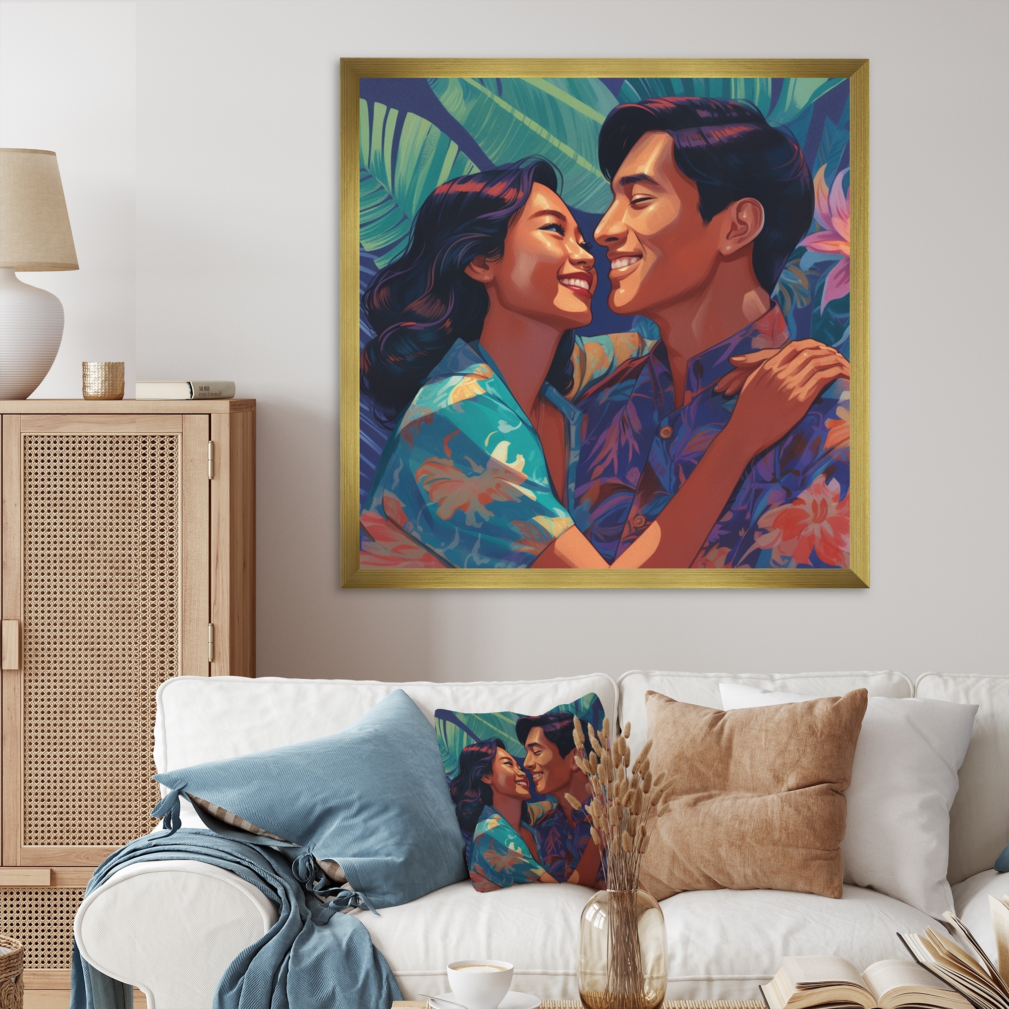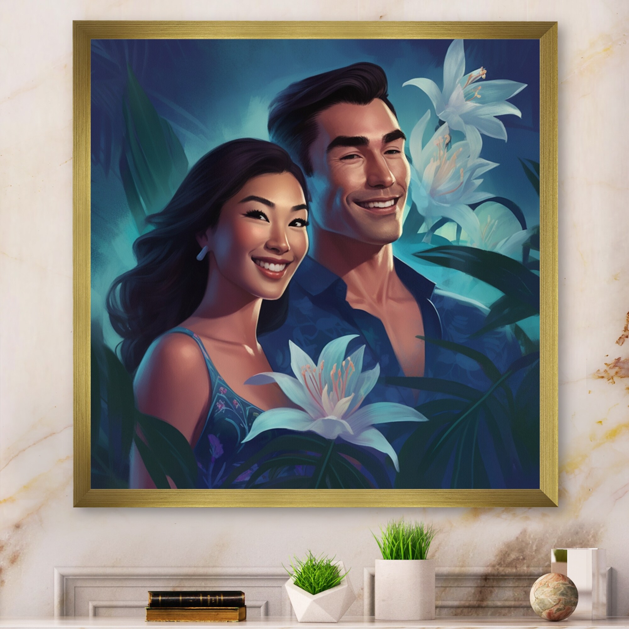Designart "Beautiful Asian Couple in Love I" Romantic Framed Wall Art for Living Room