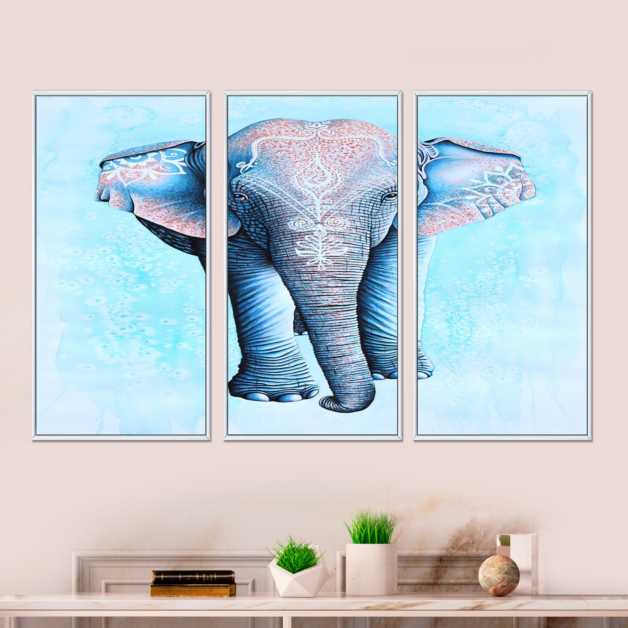 Designart "Painted Asian Elephant" Tropical Framed Wall Decor Set of 3 - 4 Colors of Frames