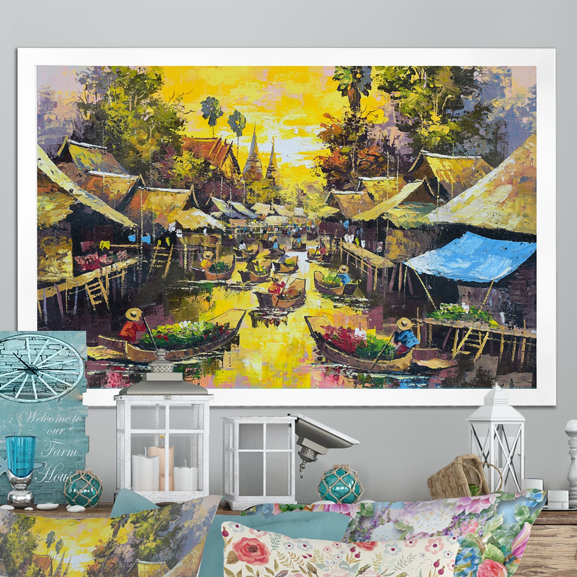 Designart "Riverside Life in Asian Country" Traditional Framed Art Print