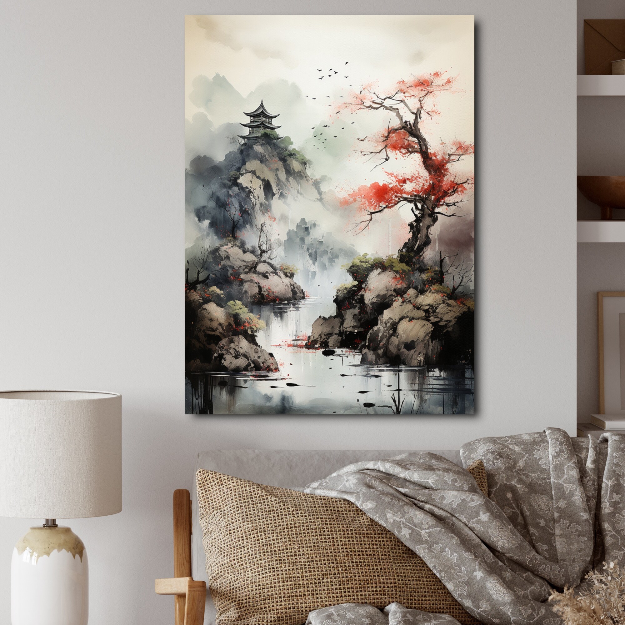 Designart "Mountain Top Asian Inspired Home Ii" Japon Landscape Wall Decor