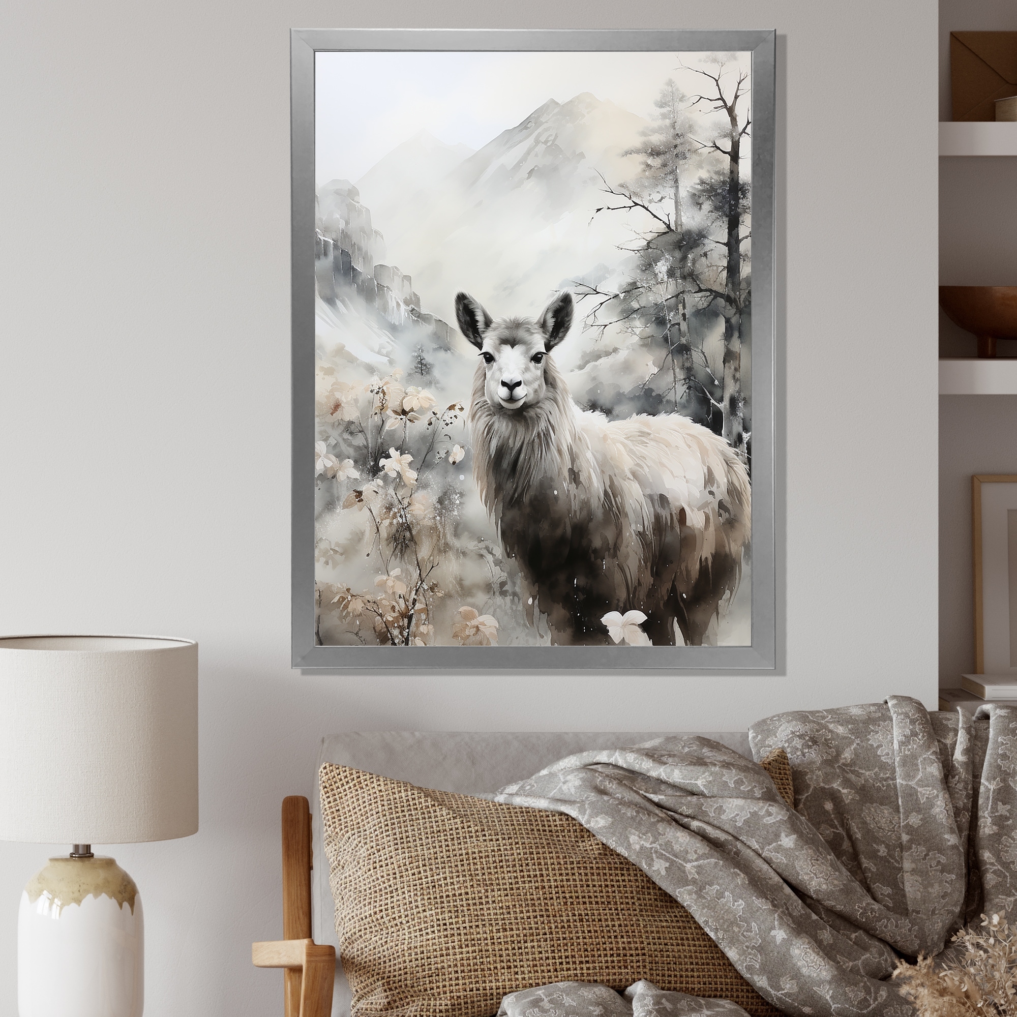 Designart "Asian Art Huacayass Sumi I" Llama Framed Canvas Print