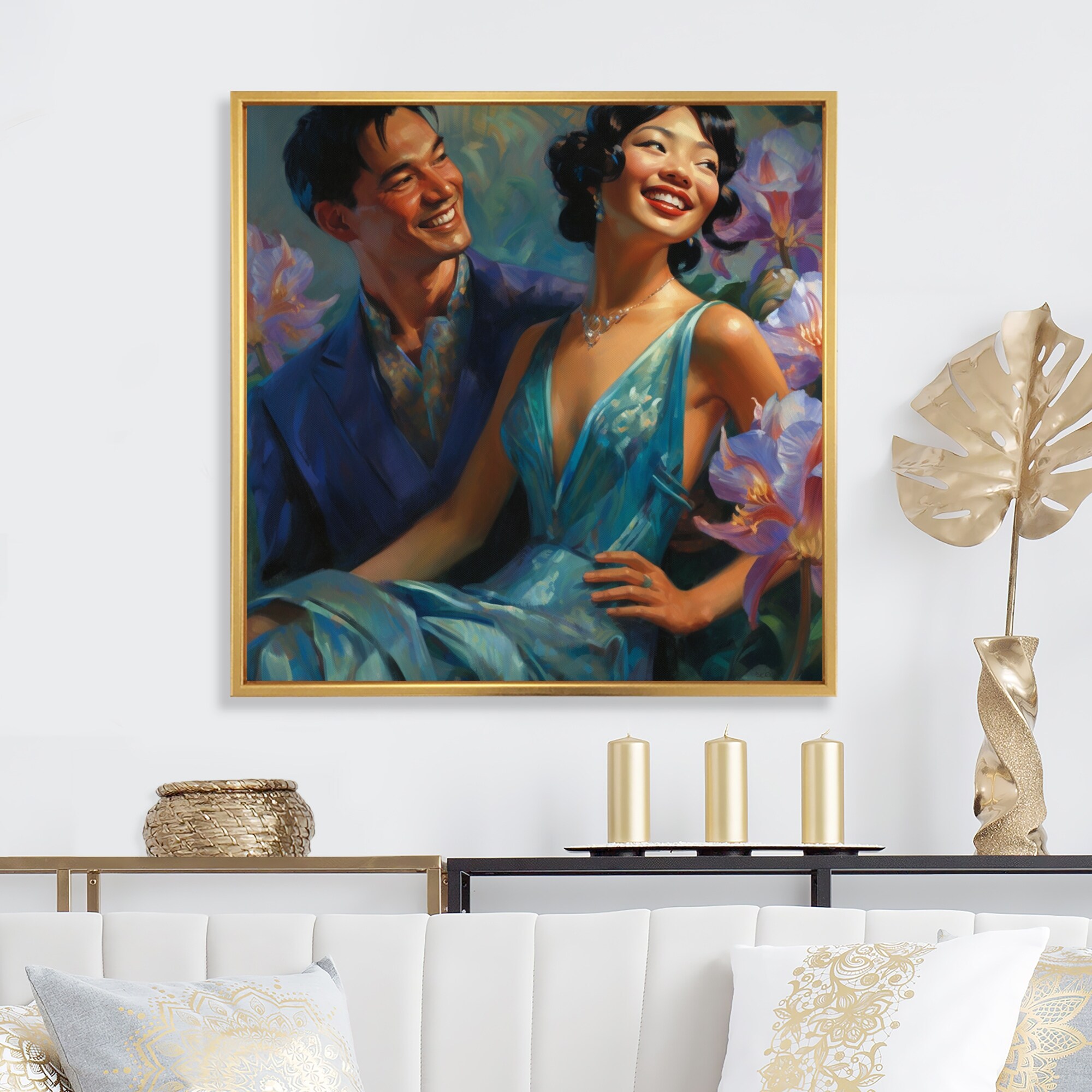 Designart "Beautiful Asian Couple in Love V" Romantic Framed Canvas Art Print