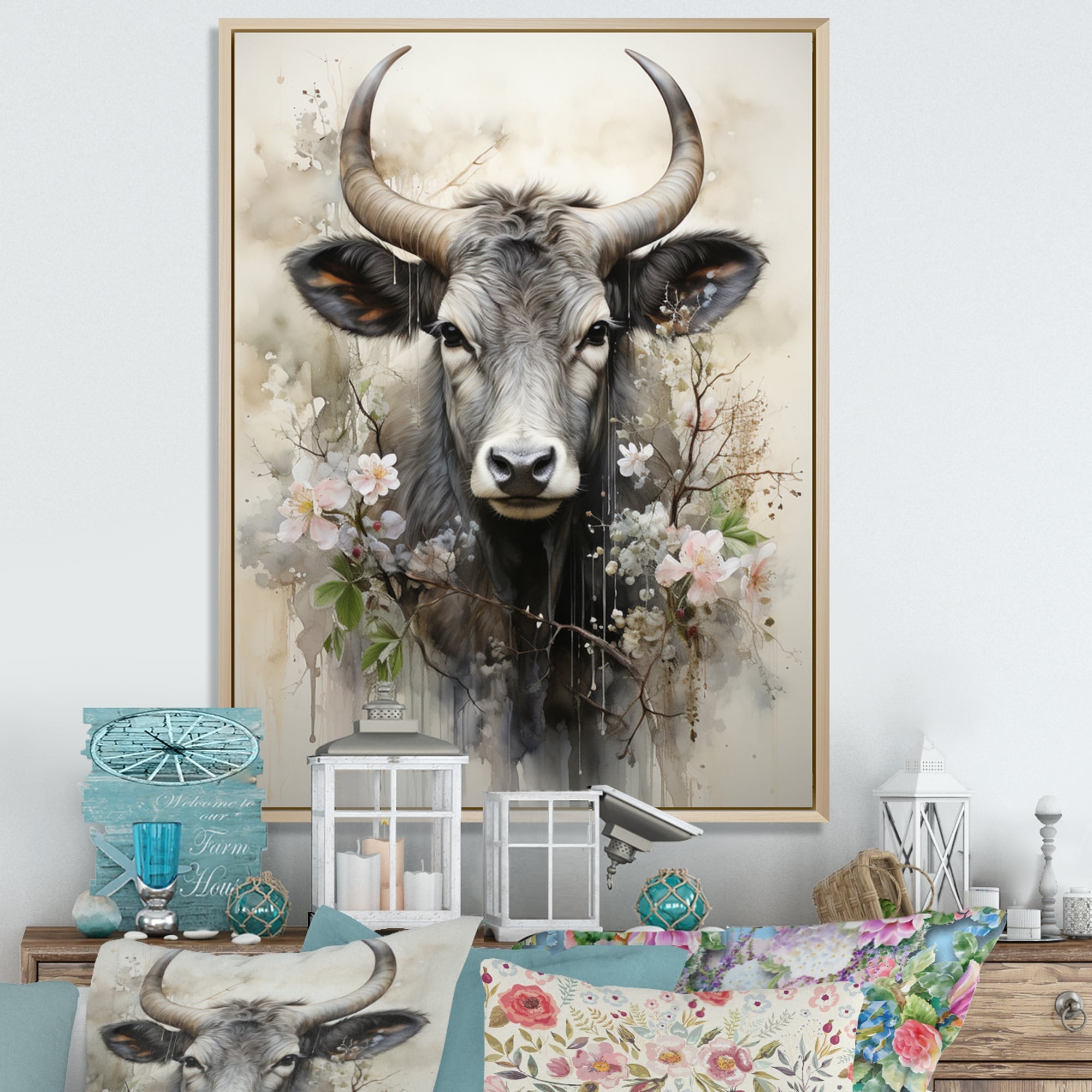 Designart "Asian Art Cow Sumi II" Asian Art Framed Canvas Wall Art