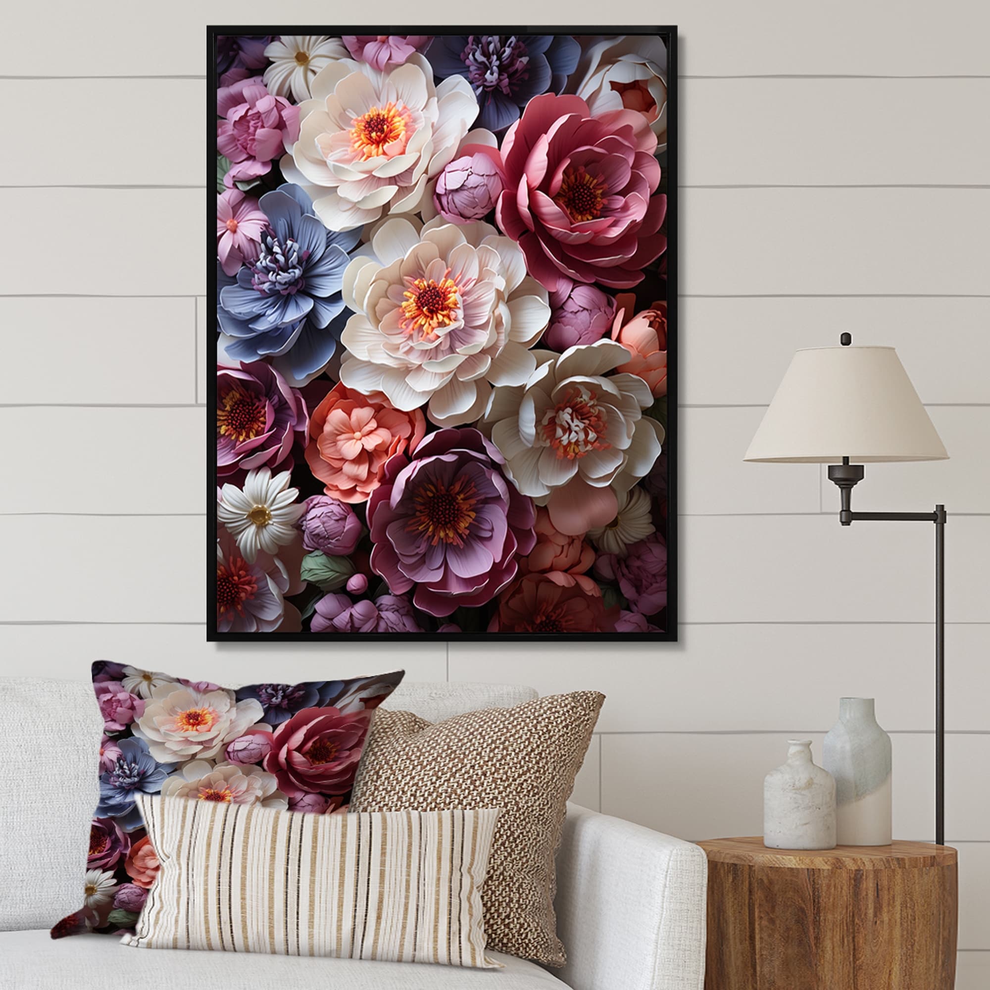 Designart "Asian Art Peonies in Pink III" Asian Art Framed Wall Art Living Room
