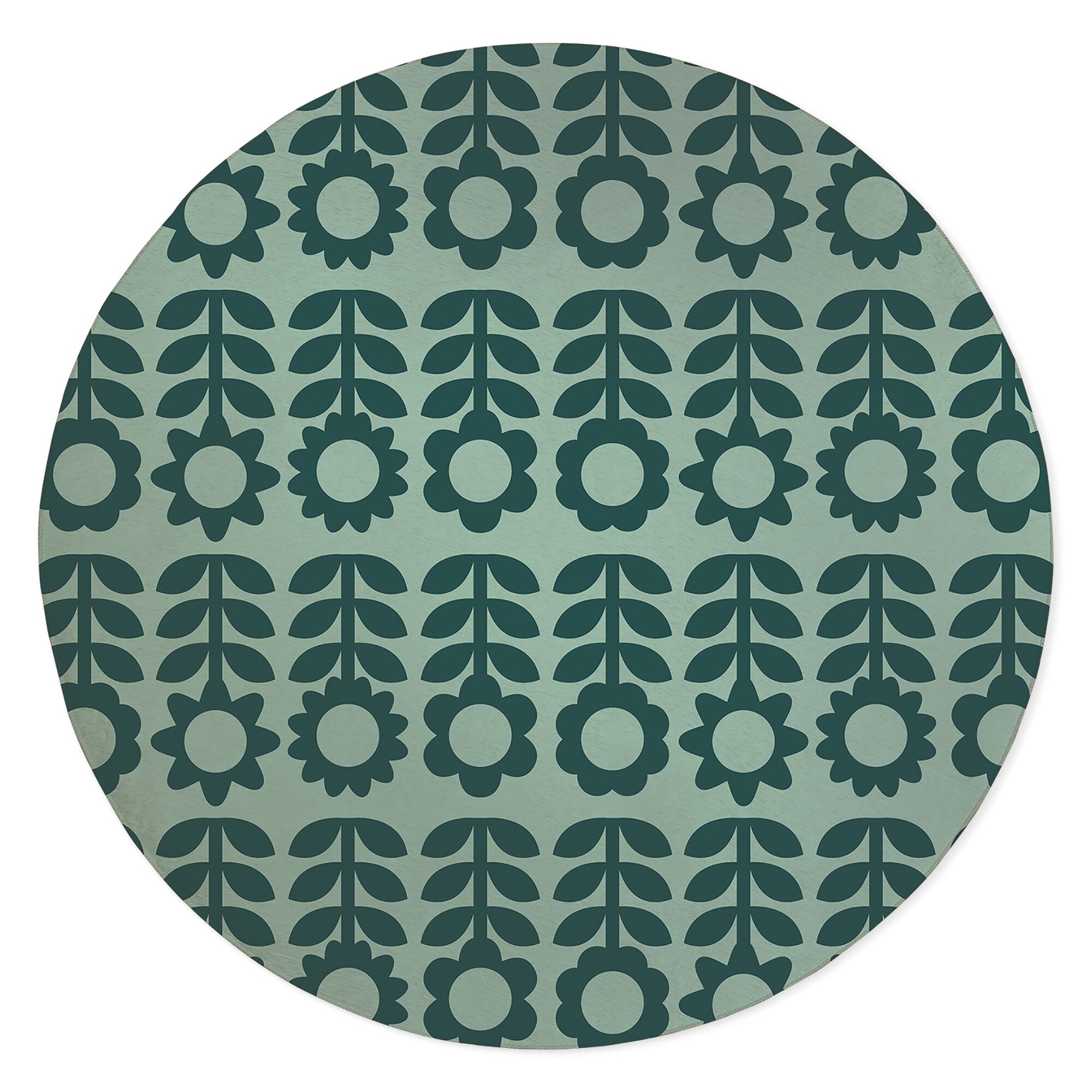 RETRO FLOWER GARDEN GREEN Area Rug By Becky Bailey