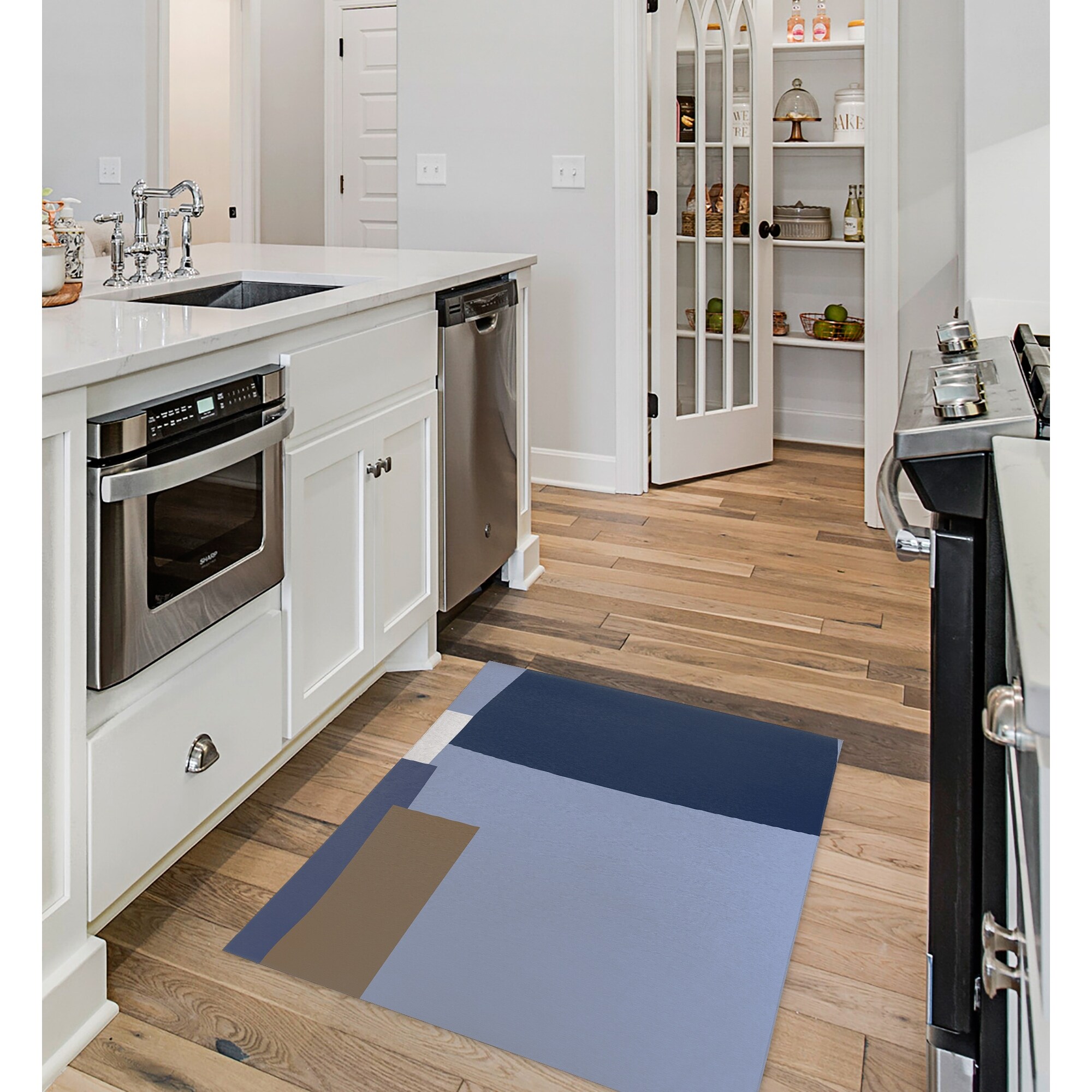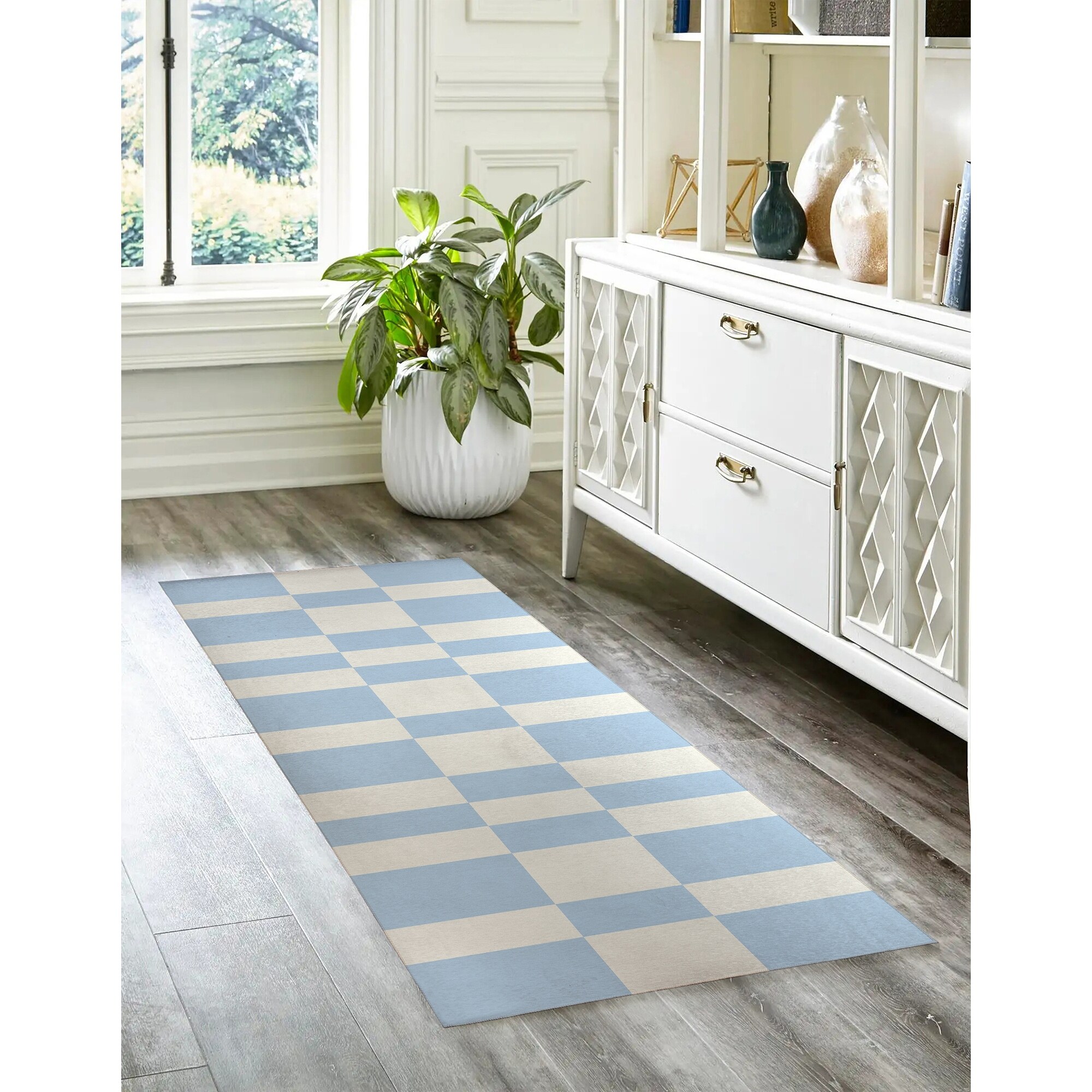 LONG CHECKS BLUE Kitchen Mat By Becky Bailey
