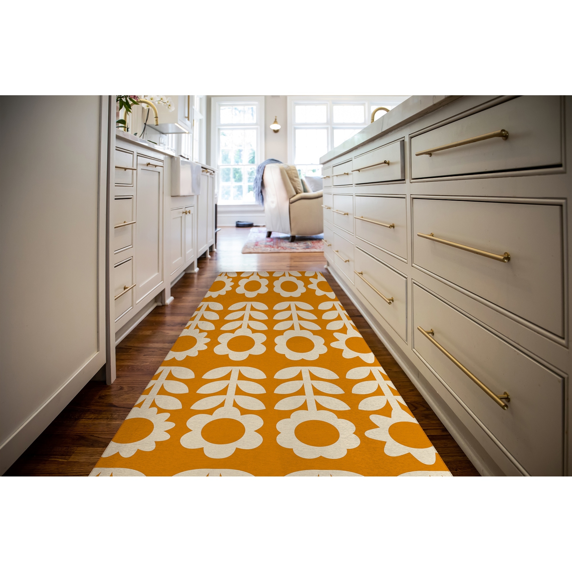 RETRO FLOWER GARDEN GOLD Kitchen Mat By Becky Bailey