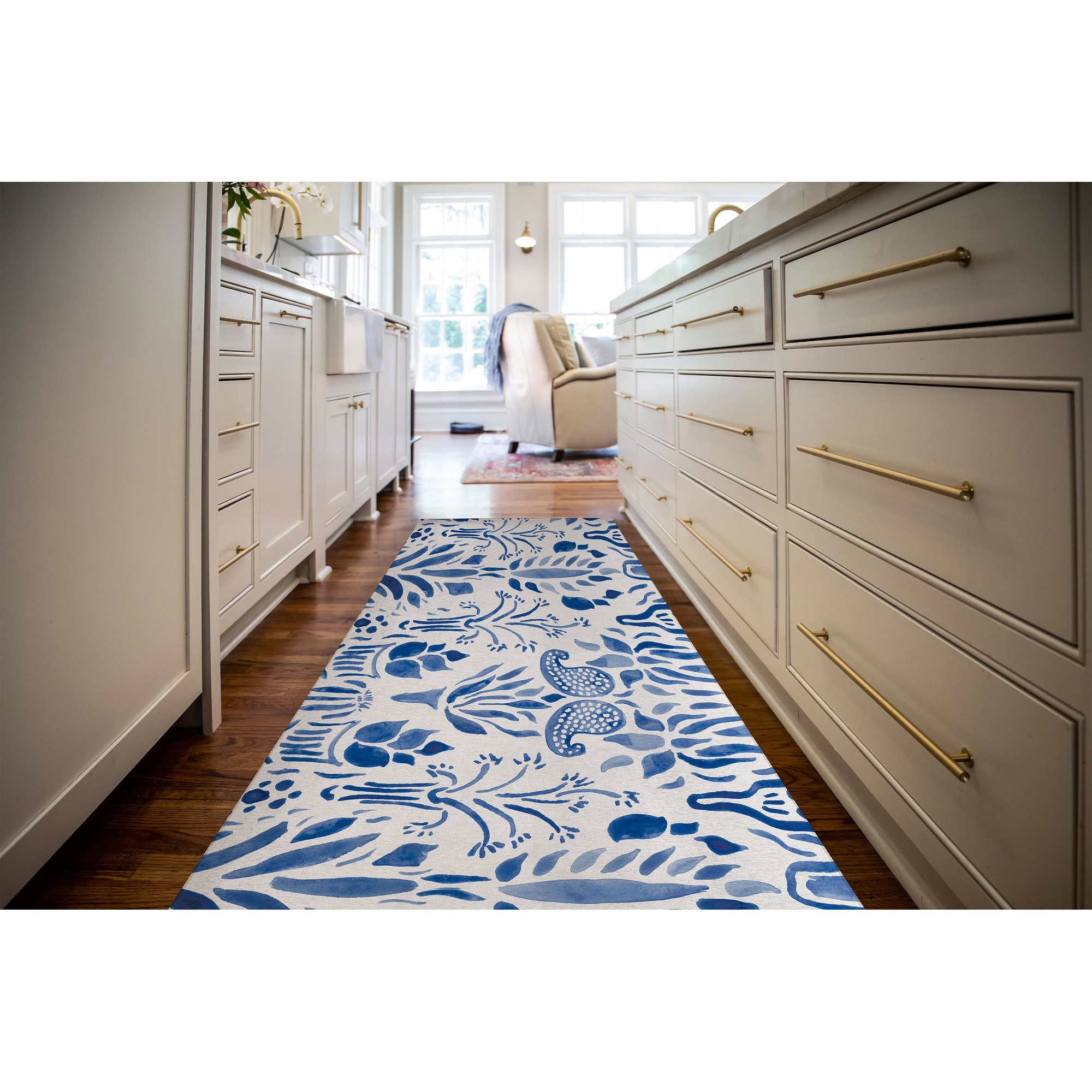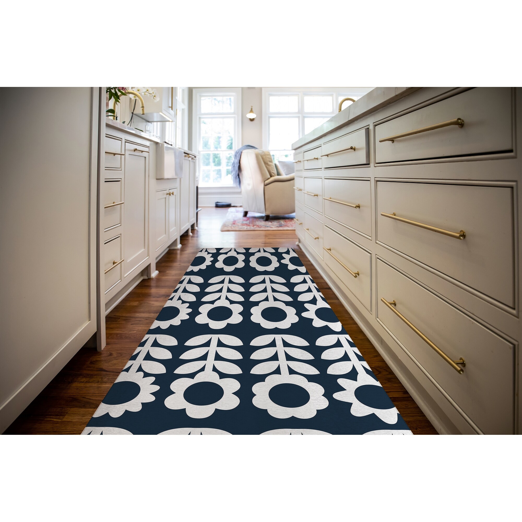 RETRO FLOWER GARDEN NAVY Kitchen Mat By Becky Bailey