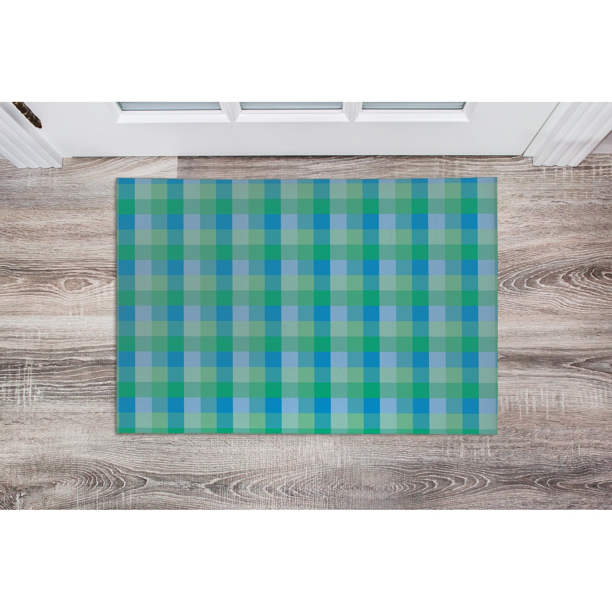 PLAID WEAVE BLUE Indoor Floor Mat By Becky Bailey