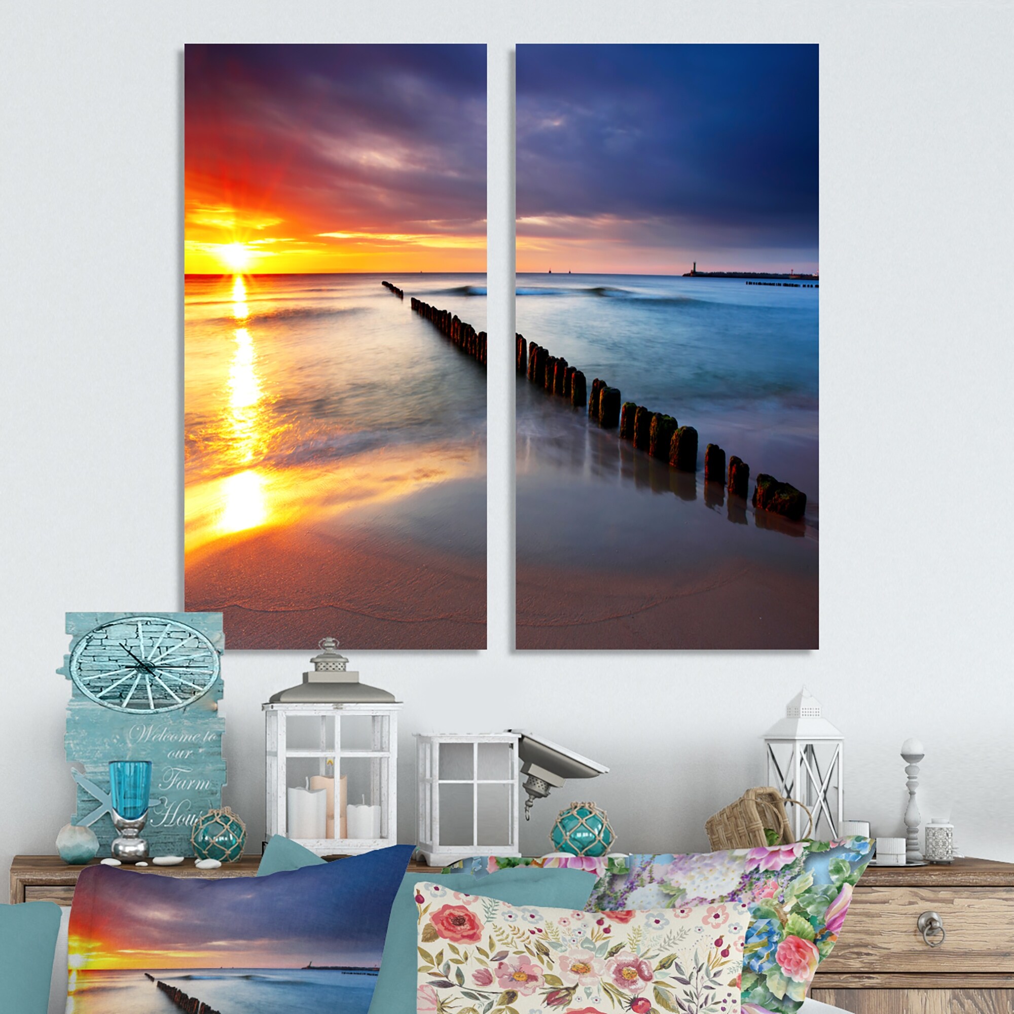 Designart "Baltic Sea Poland Beach" Sea & Shore Canvas Wall Art Print 2 Piece Set