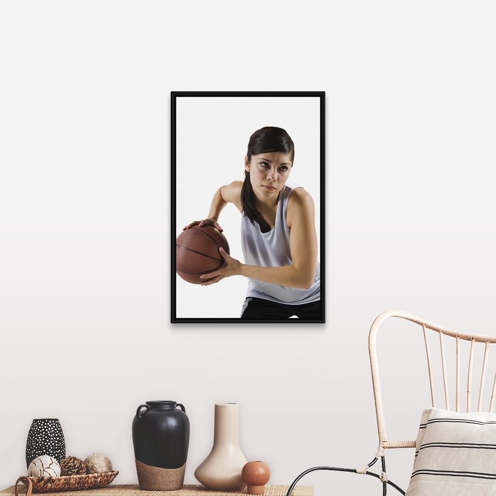 "Female basketball player" Black Float Frame Canvas Art
