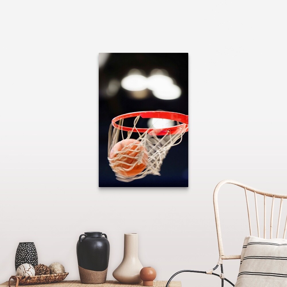 "Basketball in basket." Canvas Wall Art
