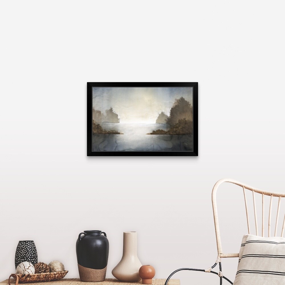 "Lake Bouncing Light Beams" Black Float Frame Canvas Art