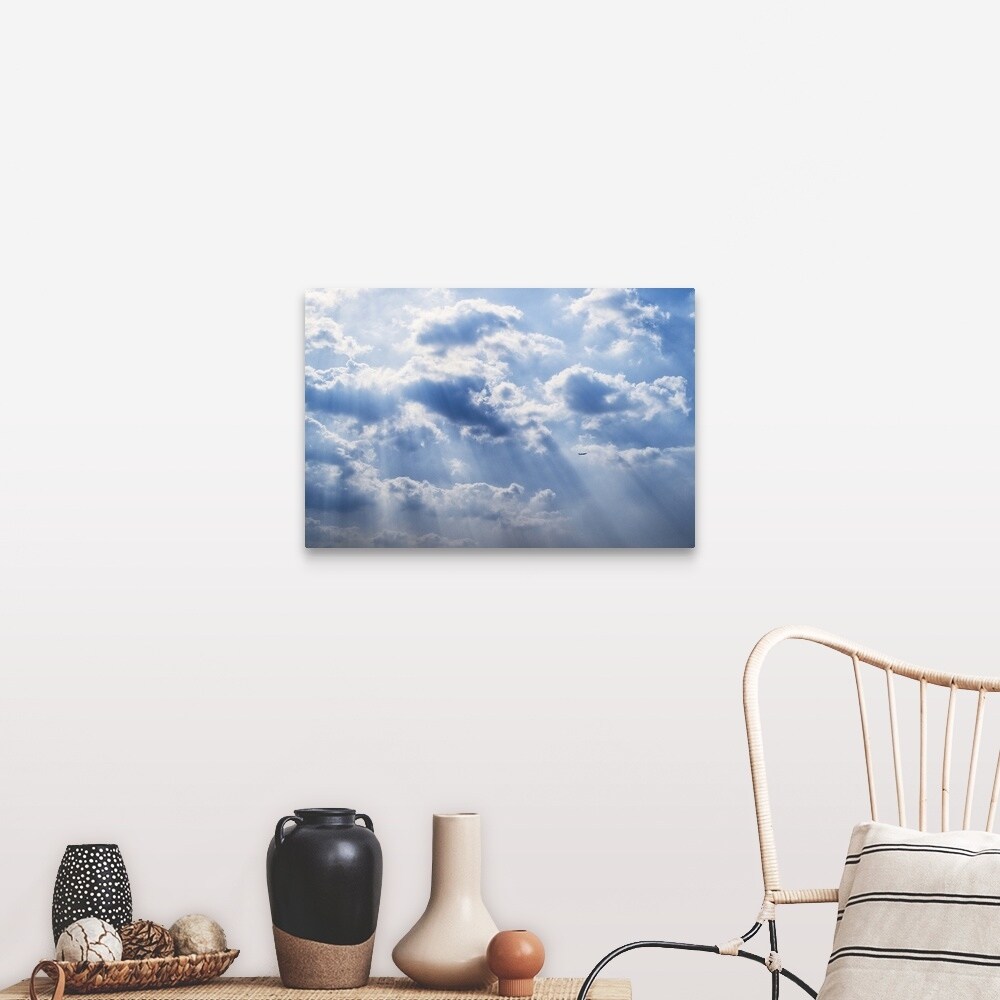 "Sun rays beaming through the clouds" Canvas Wall Art