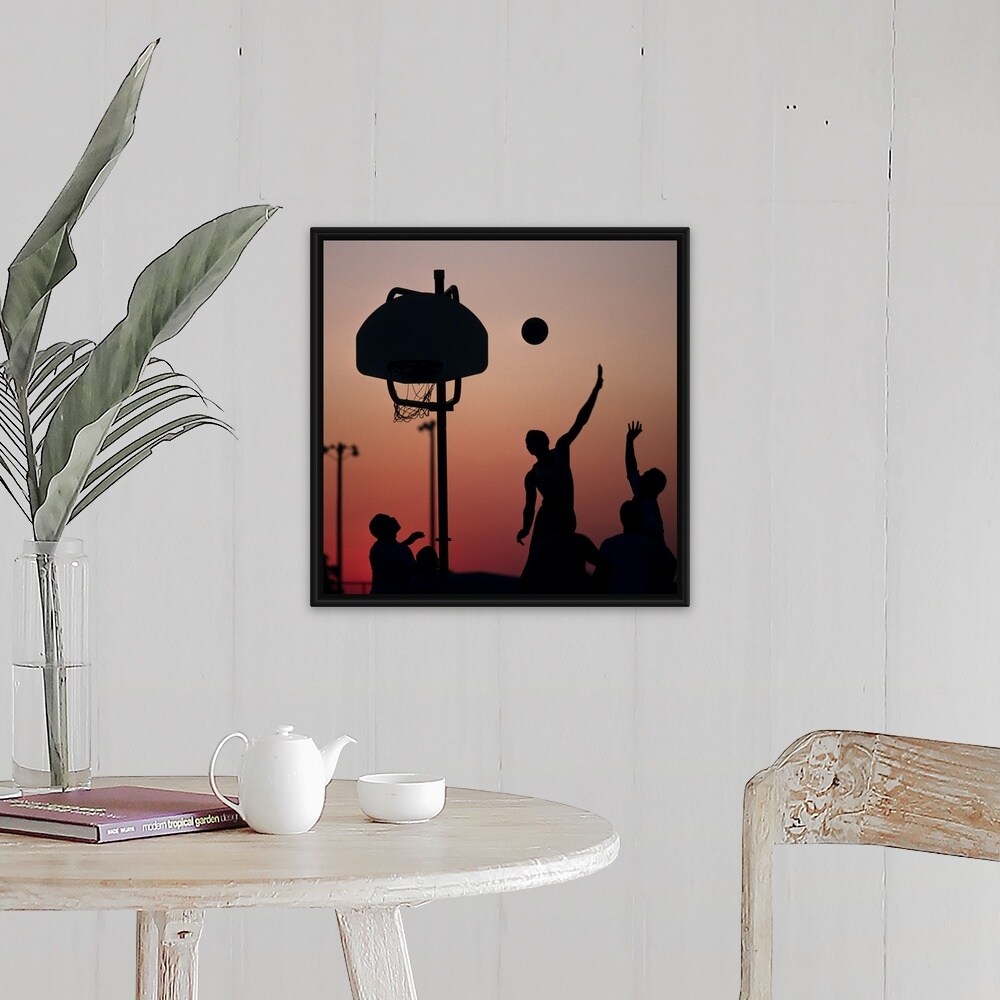 "Silhouette of men playing basketball" Black Float Frame Canvas Art