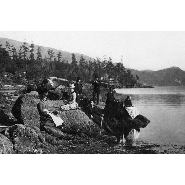 Men and Women on the West Seattle shoreline Black and White Gallery Wrapped Canvas