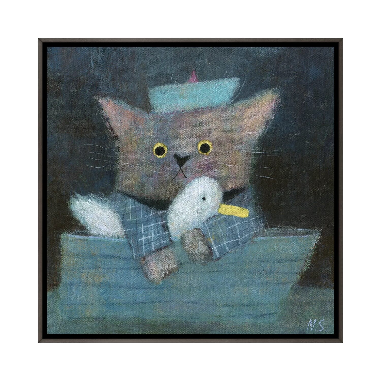 iCanvas "The Cat And the Duck in the Boat" by Natalia Shaloshvili Framed