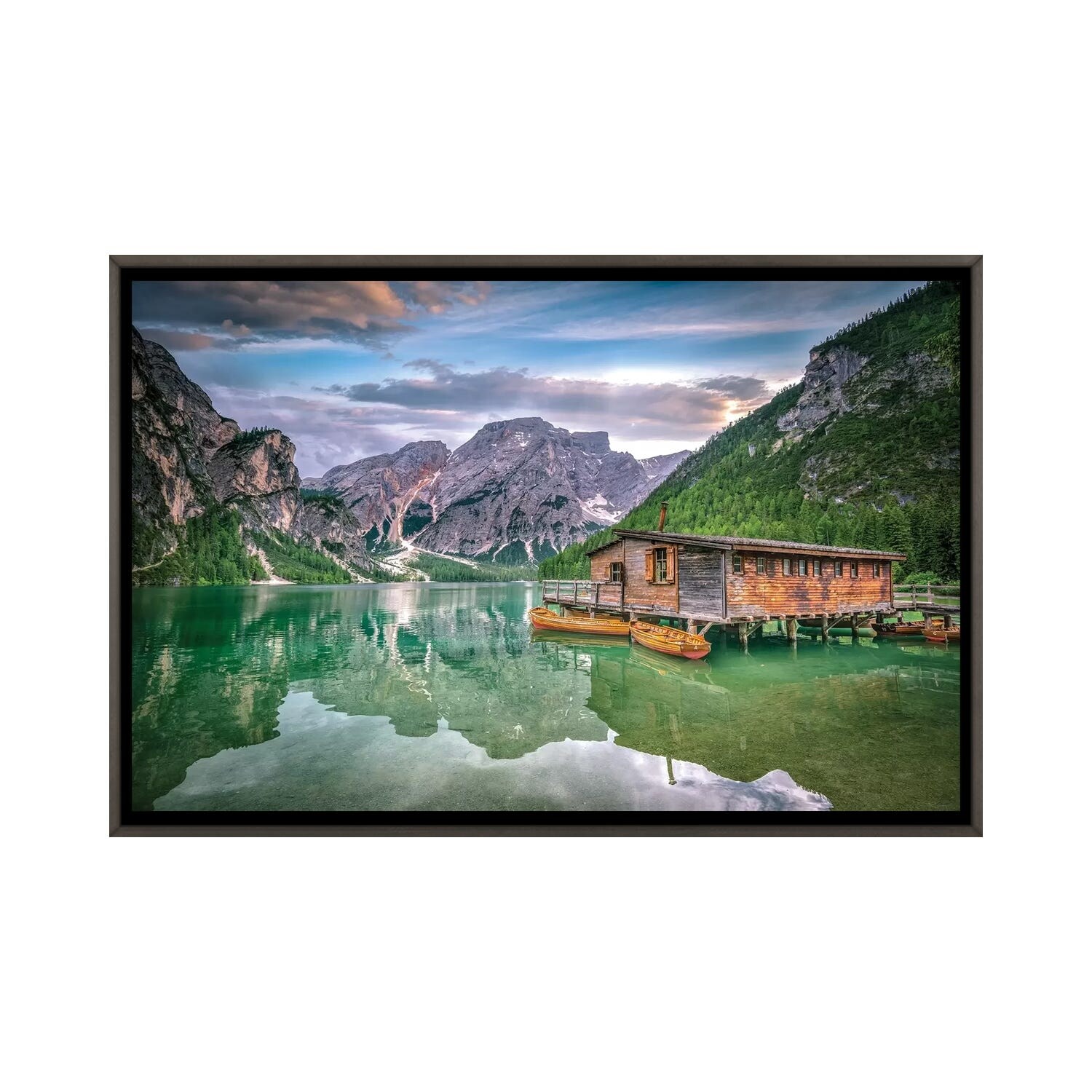 iCanvas "Braies Lake Boats" by Marco Carmassi Framed